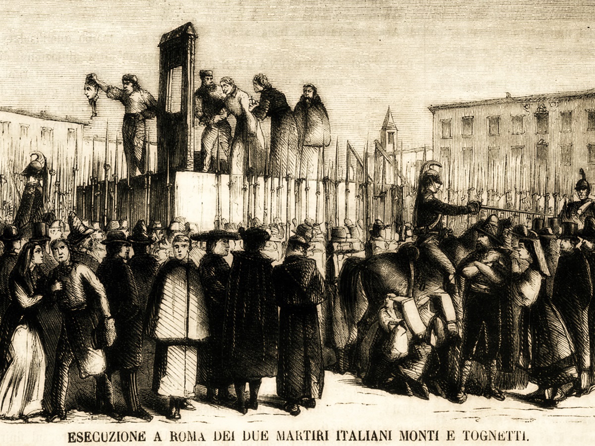 Il 24 Novembre 1868 sono decapitati ai Cerchi Giuseppe Monti e Gaetano Tognetti: il 22 ottobre del 1867 avevano compiuto un attentato alla caserma Serristori degli Zuavi Pontifici in Borgo. Invano Vittorio Emanuele ne aveva chiesto la grazia al Papa. Sono gli ultimi due condannati a morte dello stato Pontificio.