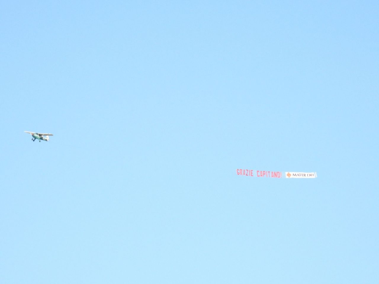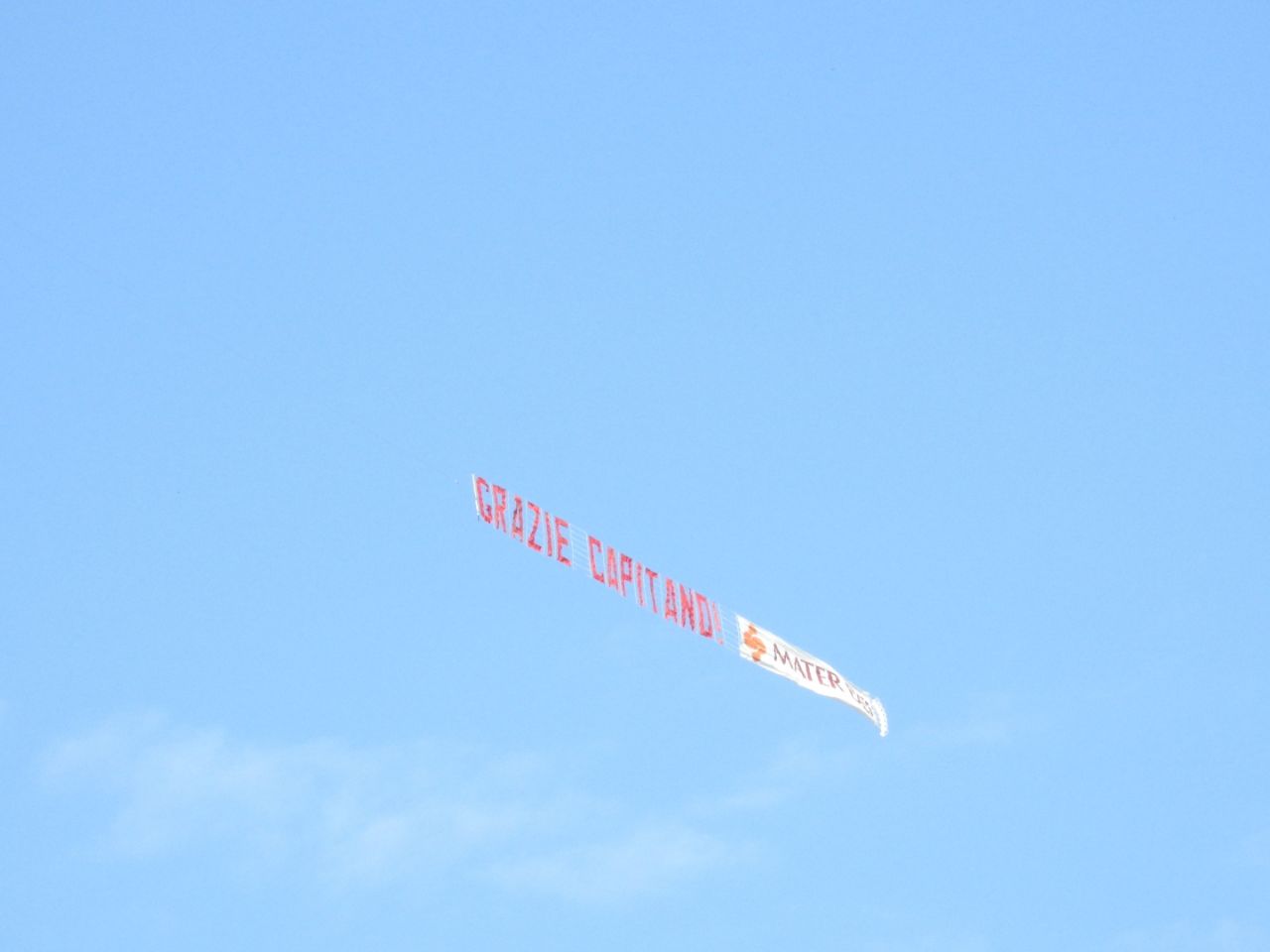 Durante il riscaldamento di Roma-Genoa, è passato un aereo con uno striscione volante con scritto: "Grazie capitano".