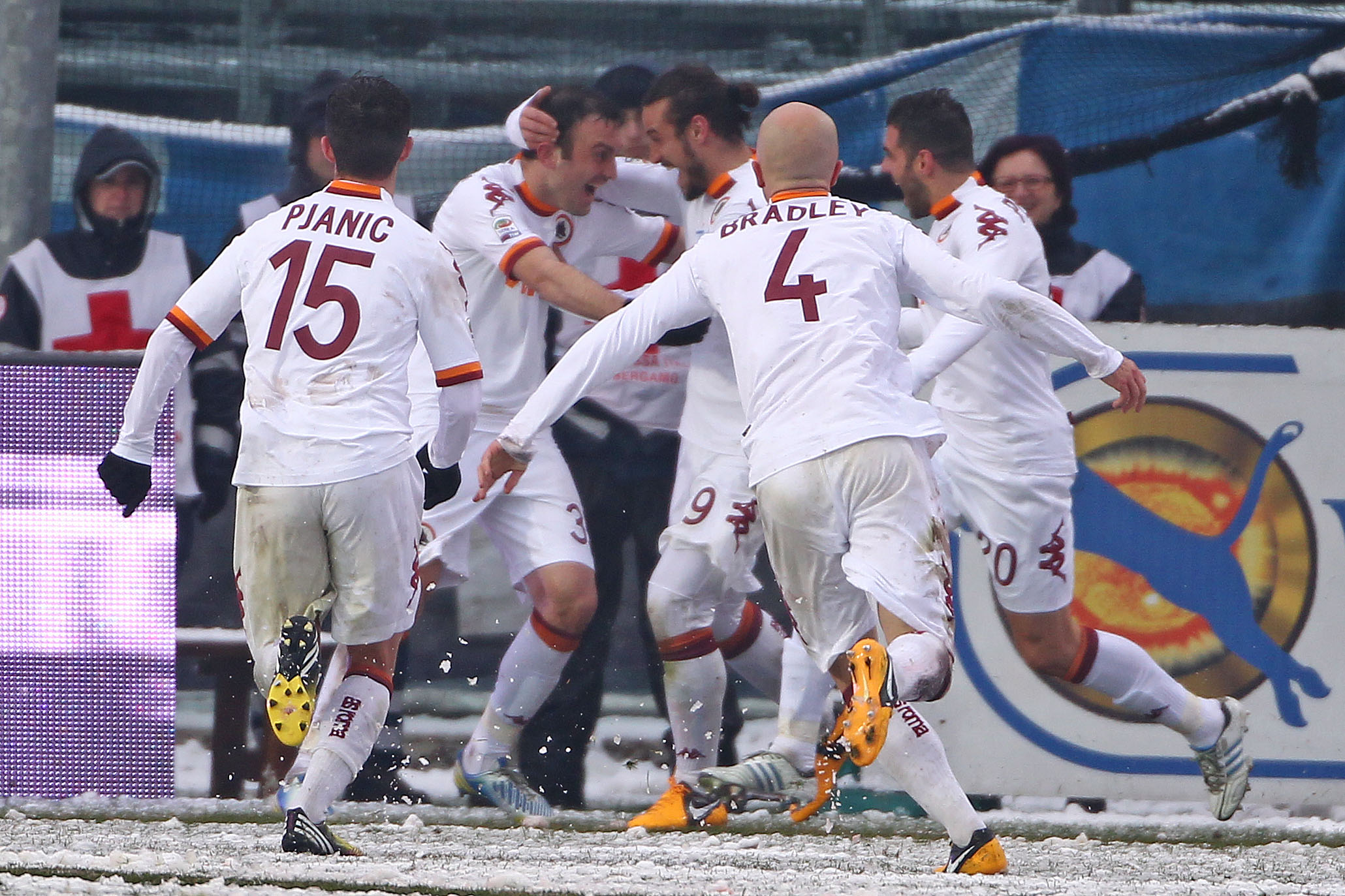 Grande vittoria per la Roma in quel di Bergamo, dove i giallorossi hanno guadagnato tre punti importanti grazie alle reti di Marquinho, Pjanic e Torosidis, quest'ultimo al primo gol con la sua nuova squadra, che hanno risposto ad una doppietta dell'atalantino Livaja.