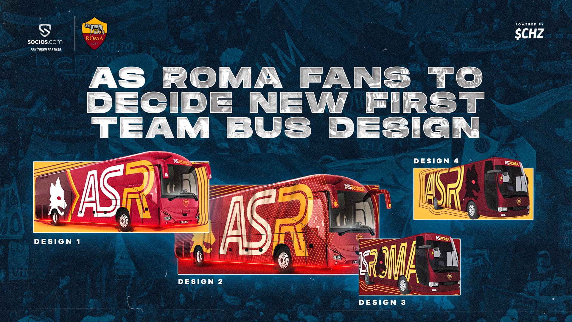 Grazie a Socios.com, da oggi tutti i possessori dei Fan Token $ASR potranno votare una delle quattro accattivanti proposte grafiche inserite nella piattaforma mobile. Il design più apprezzato prenderà vita sul telaio del pullman che trasporterà la squadra di Mourinho verso le gare in casa e in trasferta già dall’inizio della prossima stagione.