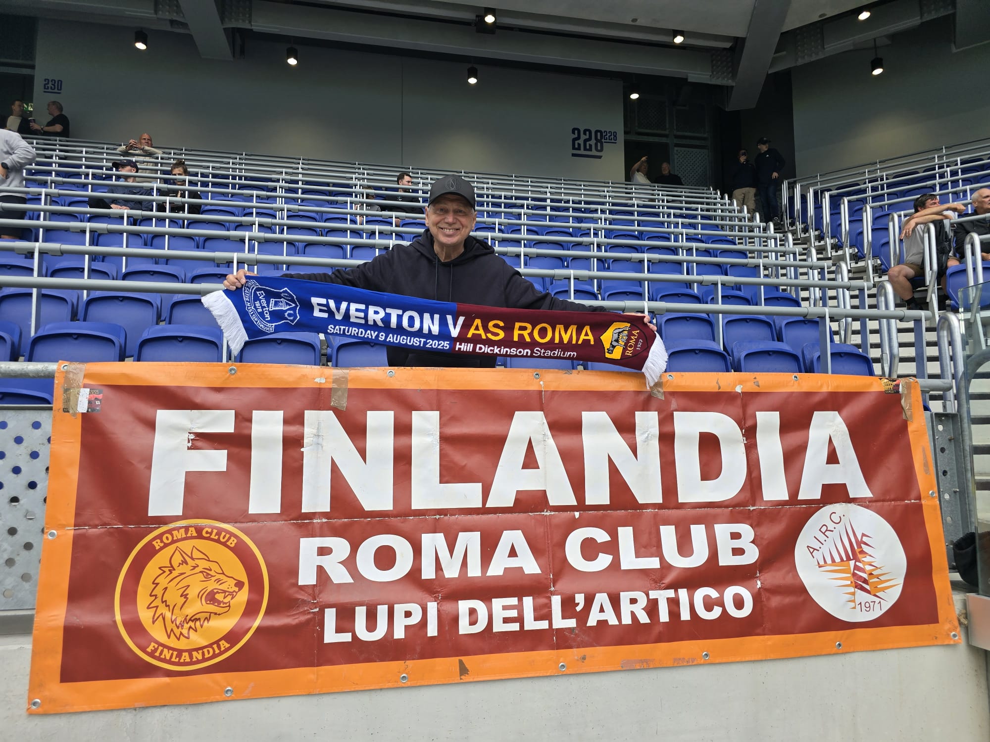 Il Roma Club Finlandia, guidato dal presidente Juha Athinen, è presente all’Hill Dickinson Stadium in occasione dell’amichevole tra Everton e Roma. La delegazione finlandese ha seguito da vicino tutte le tappe del ritiro giallorosso in Inghilterra, partecipando alle sessioni di allenamento e sostenendo la squadra nelle precedenti amichevoli. Un segnale di forte attaccamento ai colori della Roma, con il club che ha voluto essere vicino alla squadra per l’intera permanenza oltremanica.