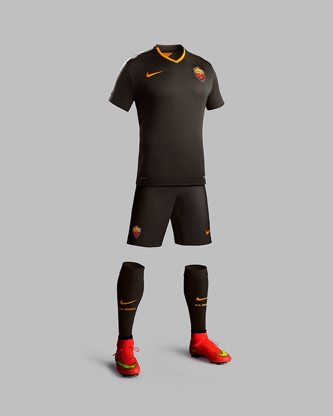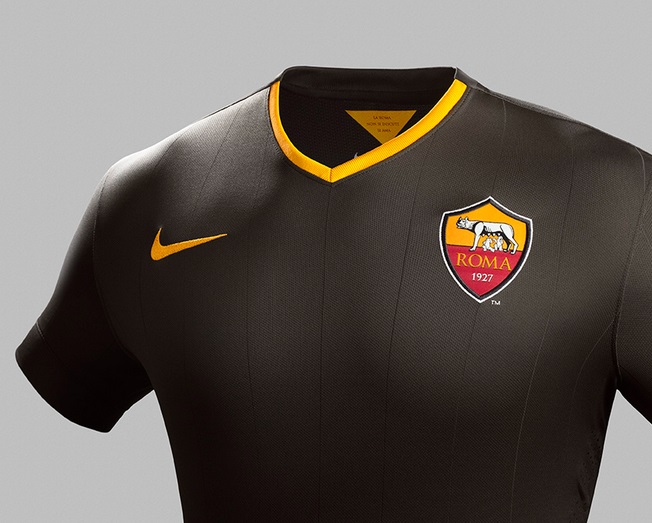 AS Roma e Nike presentano la terza divisa che la squadra indosserà in occasione degliimpegni internazionali. Il Kit racchiude in sè lo stile e l’eleganza degli abiti scuri che si indossano nelle occasioni più importanti. La maglia è marrone scuro con un motivo gessato tono su tono, presenta uno scollo a “V” bicolore, in giallo nella parte anteriore, in marrone nella parte posteriore. Così come per la prima e per la seconda maglia, all’interno del collo è cucito un gagliardetto in tessuto giallo con la scritta: “La Roma Non Si Discute Si Ama”, celebre motto che connota da sempre il senso di appartenenza di tutti i tifosi alla Roma. I nuovi calzoncini della terza divisa sonomarrone scuro, così come i calzettoni che presentano unariga a galloni tono su tono sul retro. Il nuovo Kit è realizzato con la più innovativa tecnologia Nike in grado di garantire la miglior performance agli atleti e presenta elevati standard di ecosostenibilità. La terza divisa della Roma è invendita a partire dal 25 settembre su nike.com, asromastore.it; presso i Nike Store, gli AS Roma Store ed alcuni negozi selezionati. Queste le caratteristiche principali: