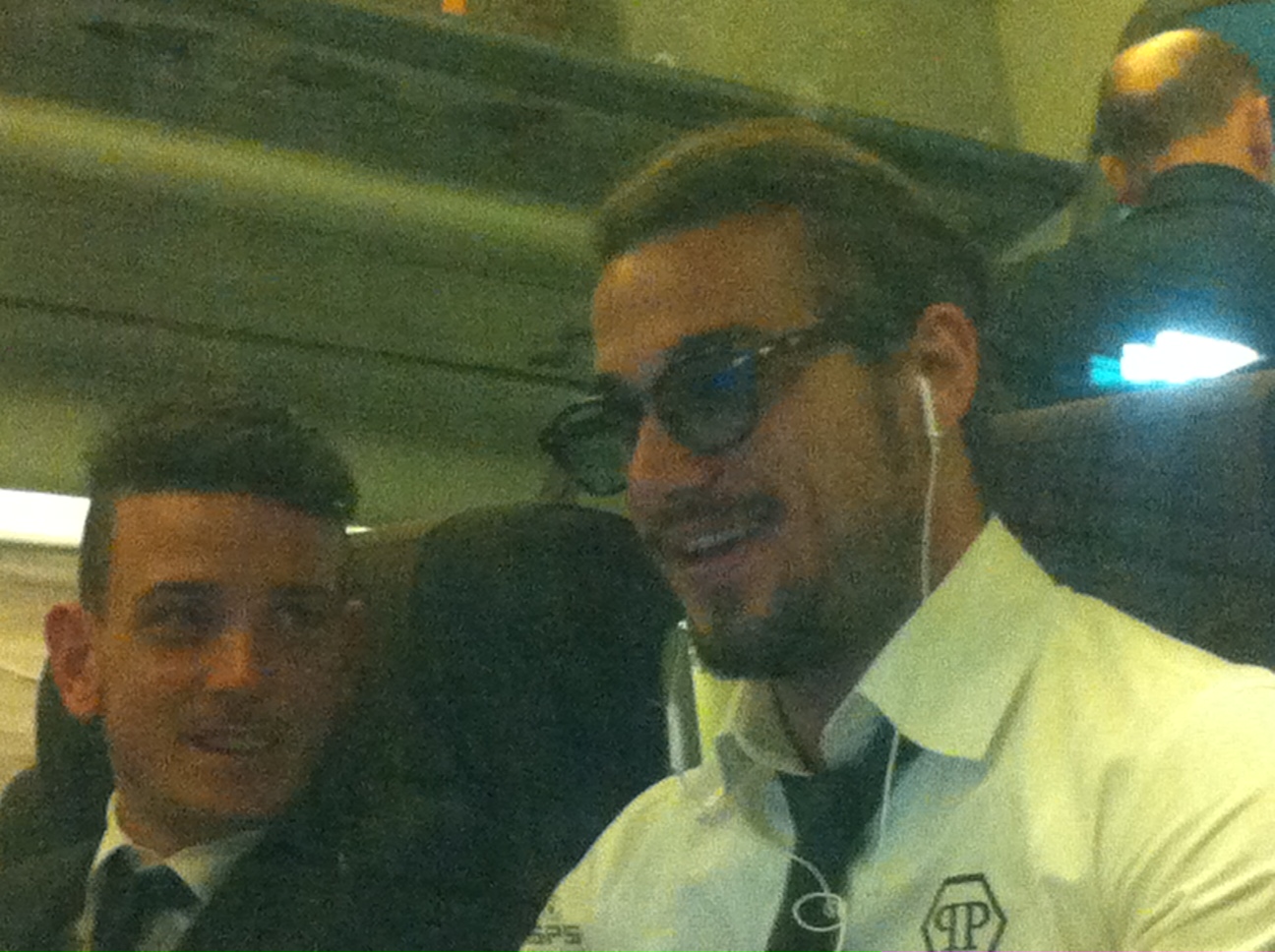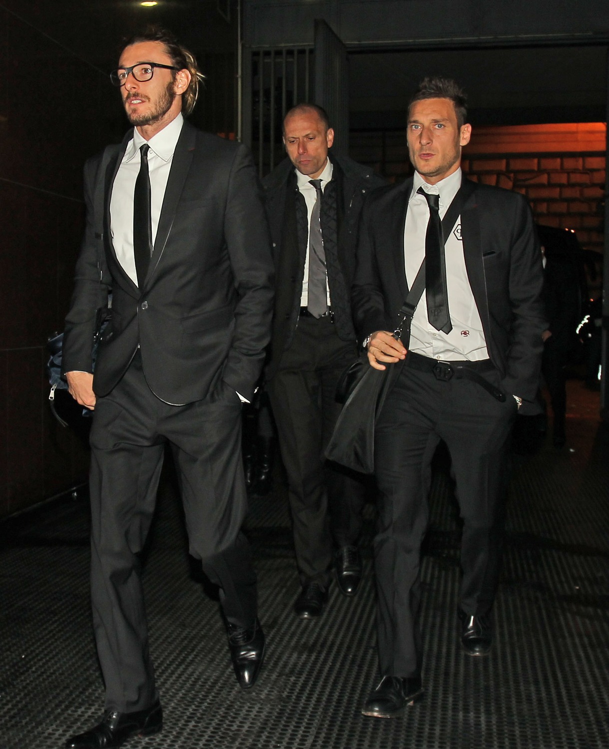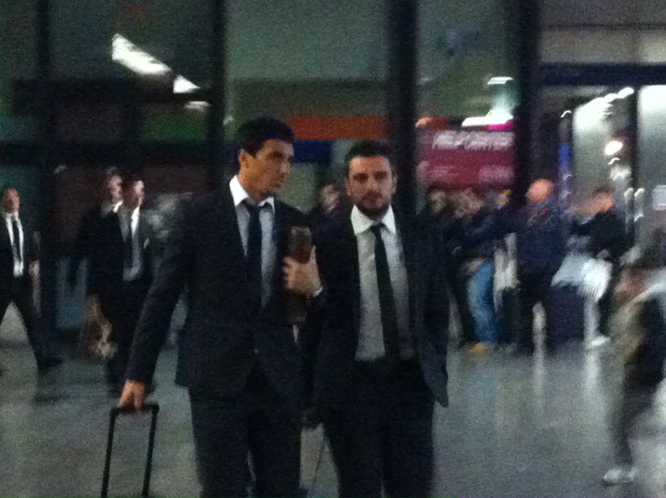 17.25 - Giungono i giocatori giallorossi, in procinto di partire. Clima molto allegro, ovazioni per Totti, Osvaldo e De Rossi.