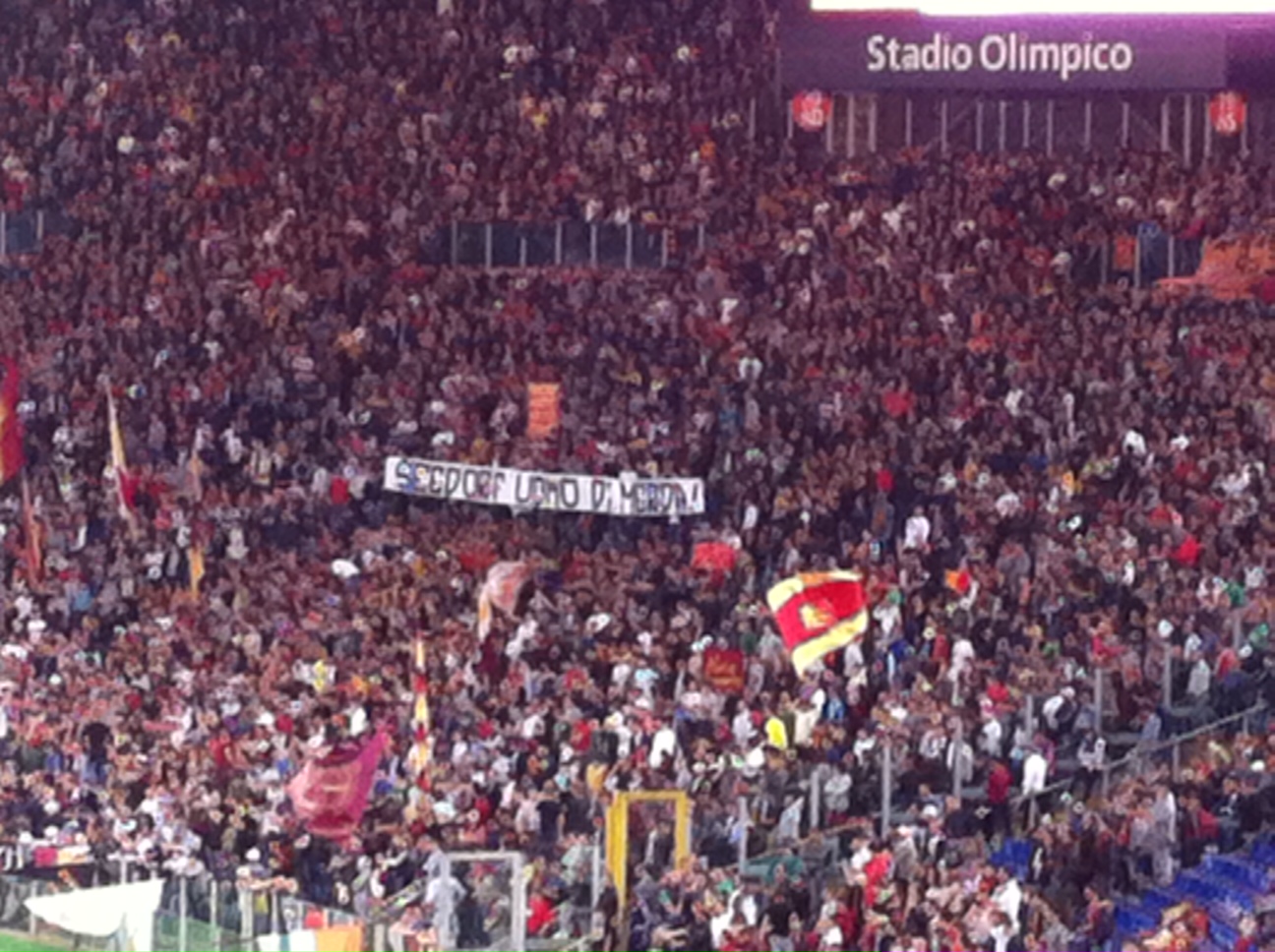 Duro striscione della Curva Sud durante i primi minuti di Roma-Milan. Destinatario del messaggio, molto diretto, il tecnico del Milan Clarence Seedorf. "Uomo di M..." recita quanto apparso in Sud.