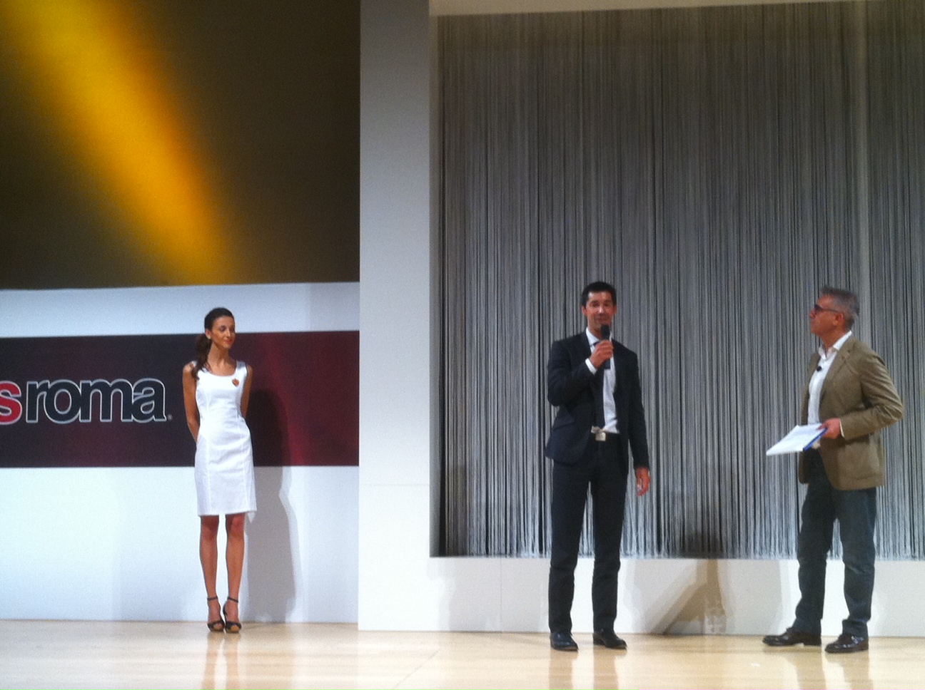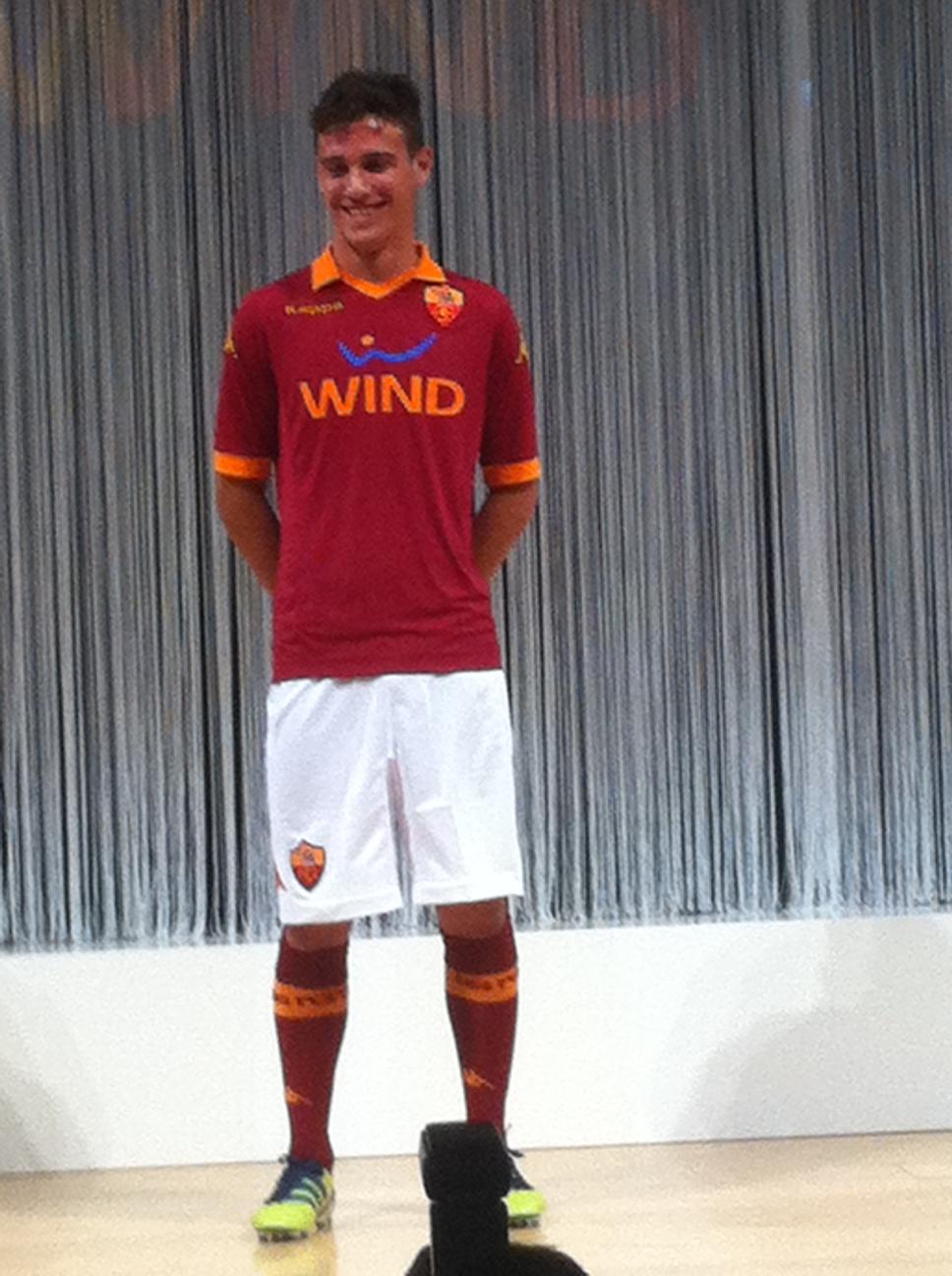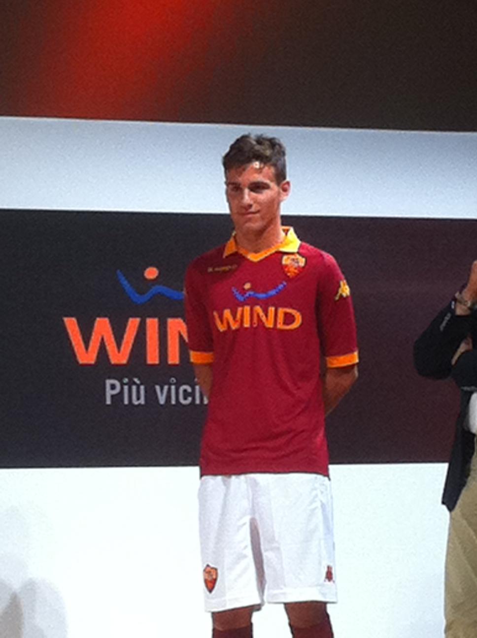 12.53 - Entra sul palco, dopo un video introduttivo, Valerio Verre, che indossa la nuova maglia della AS Roma per la stagione 2012/2013. Le parole del centrocampista: "Questa maglia, soprattutto per noi romani e romanisti, è molto importante. Dispiace per come è andata la semifinale con la Lazio, però vogliamo rifarci quest'anno e portare a Roma risultati che mancano da troppo tempo. Zeman? Ho già sentito Caprari, ci ha avvertiti che quest'estate si suderà molto (ride, ndr)".