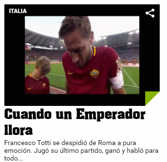 L'addio di Totti ha fatto rapidamente il giro del mondo. In Argentina, il popolare quotidiano Ole titola così: "Quando un imperatore piange", sottolineando l'emozionante saluto del numero dieci giallorossi al suo popolo, in un Olimpico letteralmente in lacrime.