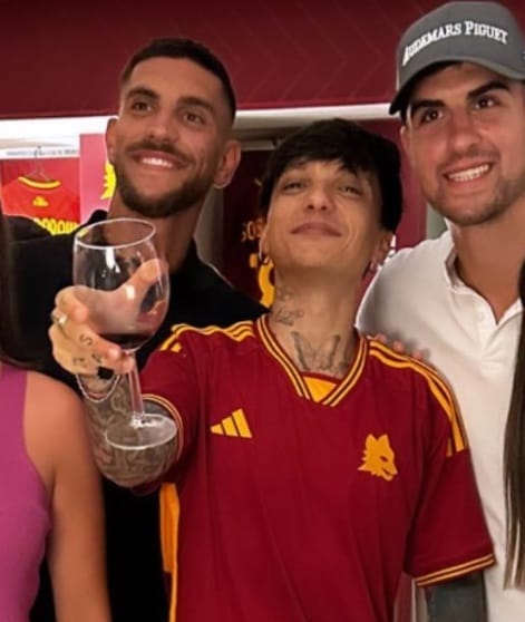 Ieri Ultimo ha tenuto il terzo concerto allo stadio Olimpico di Roma, dopo le date del 7 e dell'8 luglio. Il cantante, romano e romanista, ieri ha avuto due fan particolari che sono andati a trovarlo nel camerino dopo il concerto: si tratta di Lorenzo Pellegrini e Gianluca Mancini, come testimoniato da una foto della moglie del capitano giallorosso postata sul proprio profilo Instagram. Da notare come Ultimo indossi la nuova maglia giallorossa, targata Adidas.