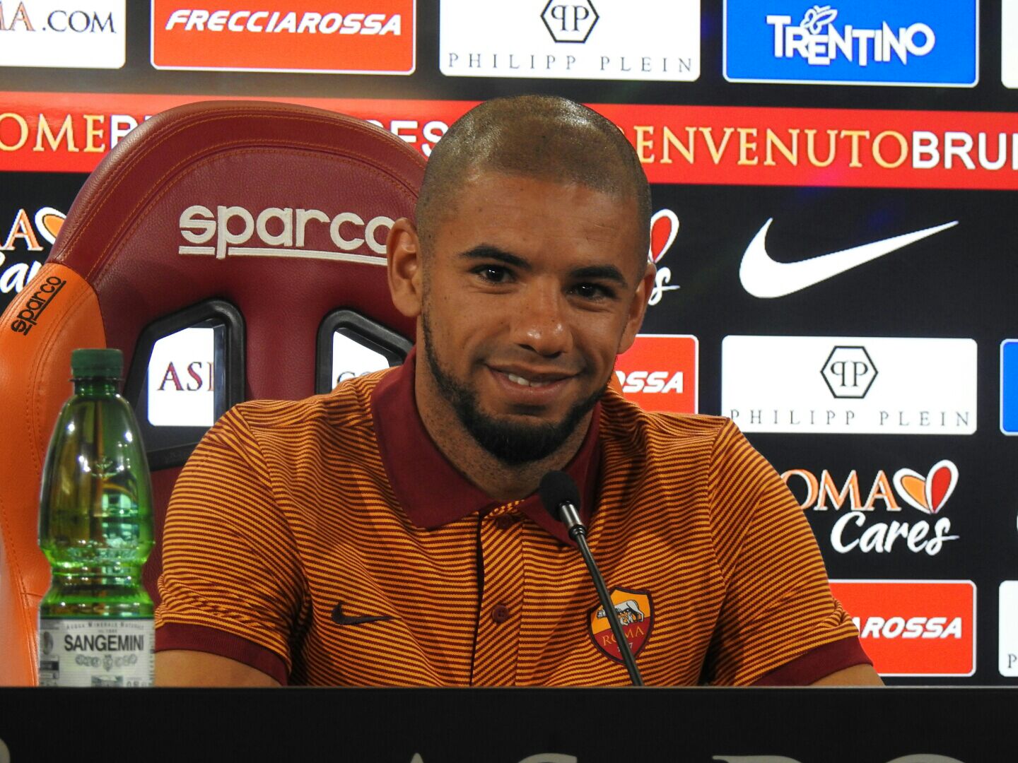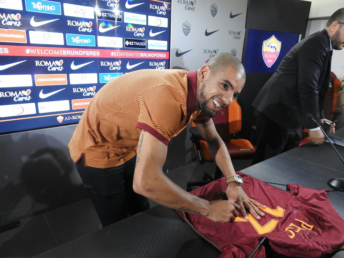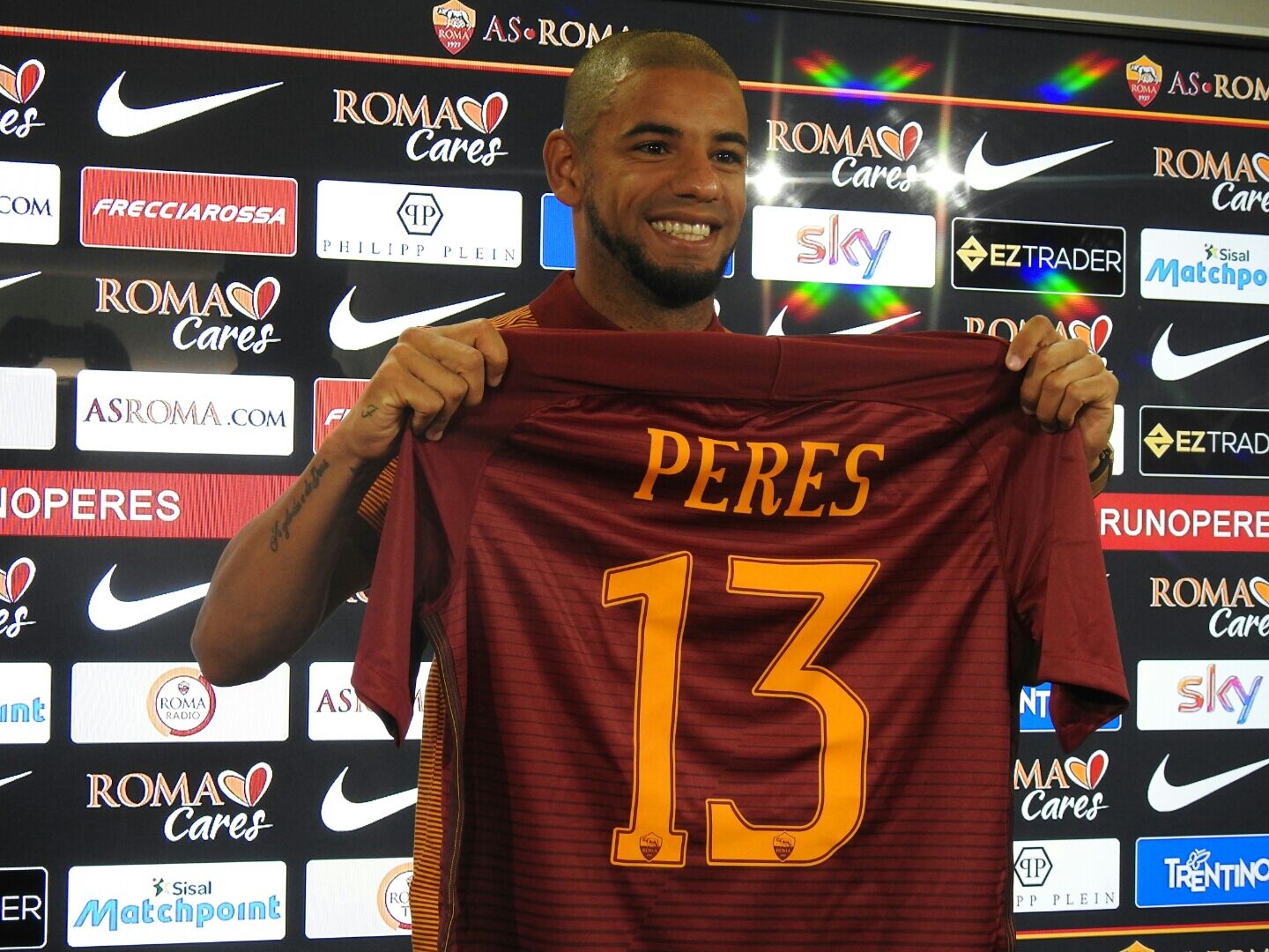 Questo pomeriggio il neo acquisto della Roma, Bruno Peres, è stato presentato al pubblico in diretta dalla sala stampa del centro sportivo Fulvio Bernardini di Trigoria. Il brasiliano, accompagnato dal direttore generale Mauro Baldissoni, si è dichiarato molto felice della scelta fatta, promettendo il massimo impegno per entrare nella storia del club e vincere lo scudetto. Vocegiallorossa.it, presente all'evento, vi propone i migliori scatti della presentazione di Bruno da Silva Peres.
