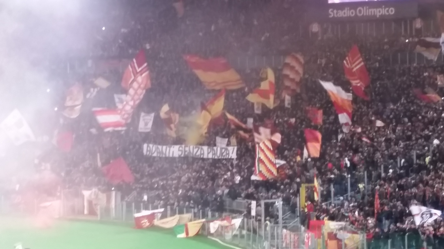 Con uno striscione, la Curva Sud ha voluto dare la sua carica alla squadra impegnata contro il Manchester City: "Avanti senza paura!"