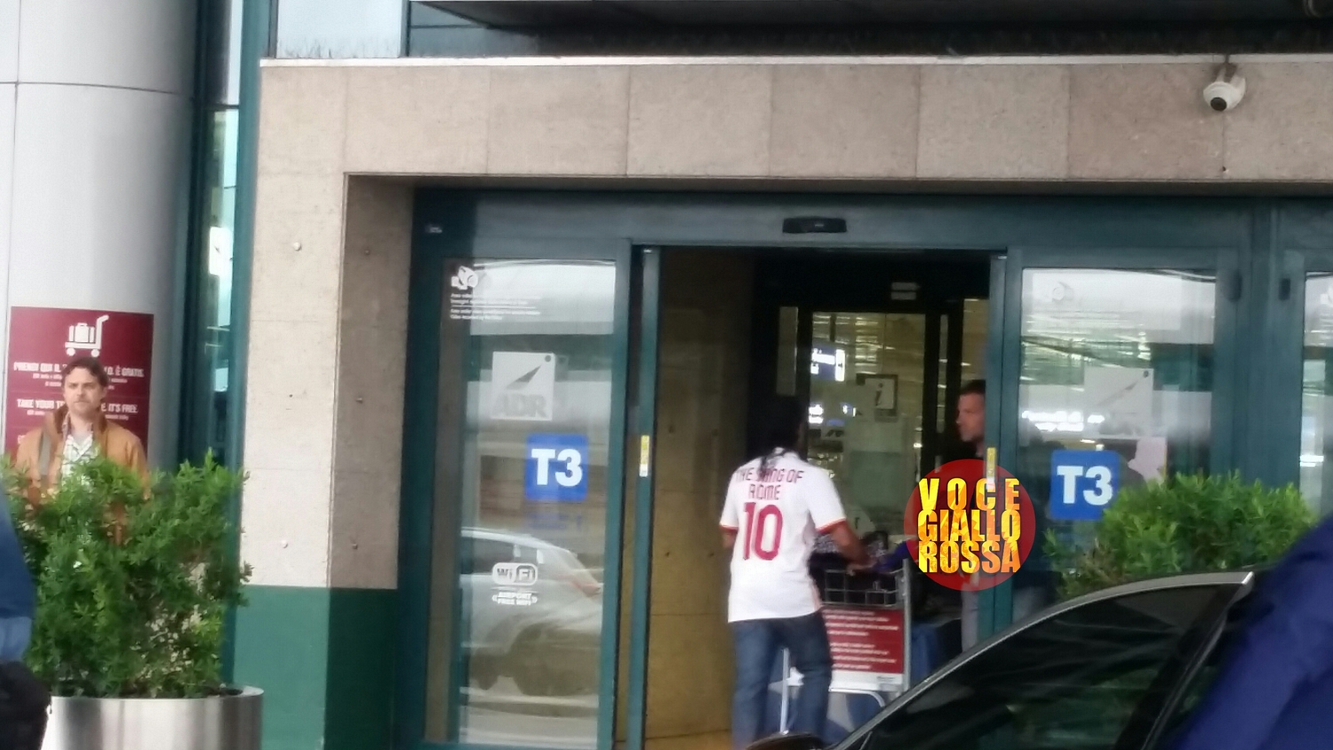 Nella giornata dell'arrivo a Roma del portiere Alisson, a Fiumicino può capitare di imbattersi in qualche tifoso curioso. È il caso di un presunto turisti che stava lasciando la Capitale con la maglia giallorosso addosso e sulle spalle il 10 e la scritta: “The king of Rome”. Il chiaro riferimento al capitano, Francesco Totti, è scontato. Speriamo solo che non sia il presagio di un addio a Roma di Totti.