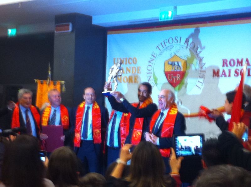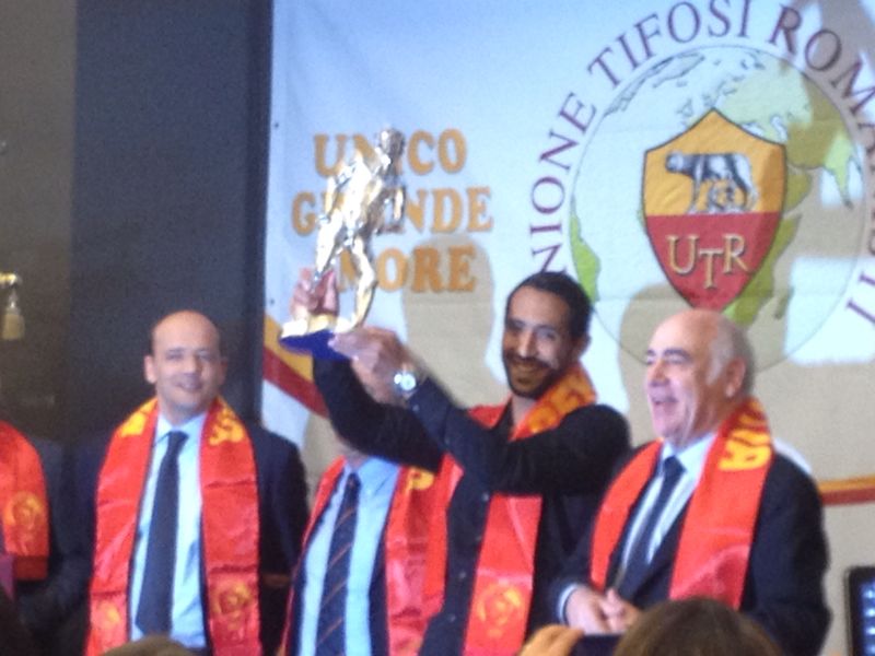 All'Hotel Midas di Roma, questa sera l'Unione Tifosi Romanisti consegnerà il premio di Giocatore dell'Anno a Mehdi Benatia. Il difensore marocchino è stato votato dai tifosi attraverso i social network e ha vinto il riconoscimento al suo primo anno in giallorosso. Presente anche l'attaccante della Roma femminile Melania Martinovic. Presente anche il direttore generale della Roma Mauro Baldissoni.