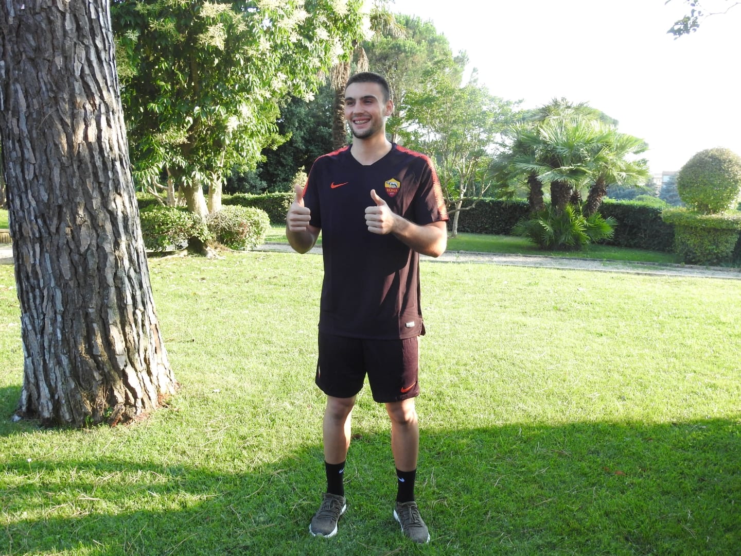 18:50 - Fuzato esce dalla clinica e si concede per le foto di rito con il materiale tecnico della Roma.