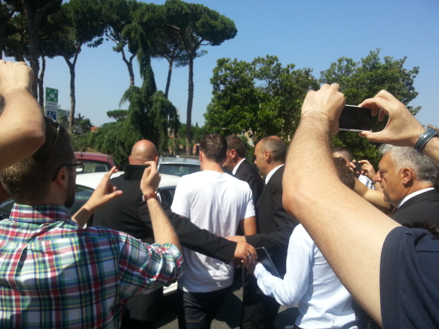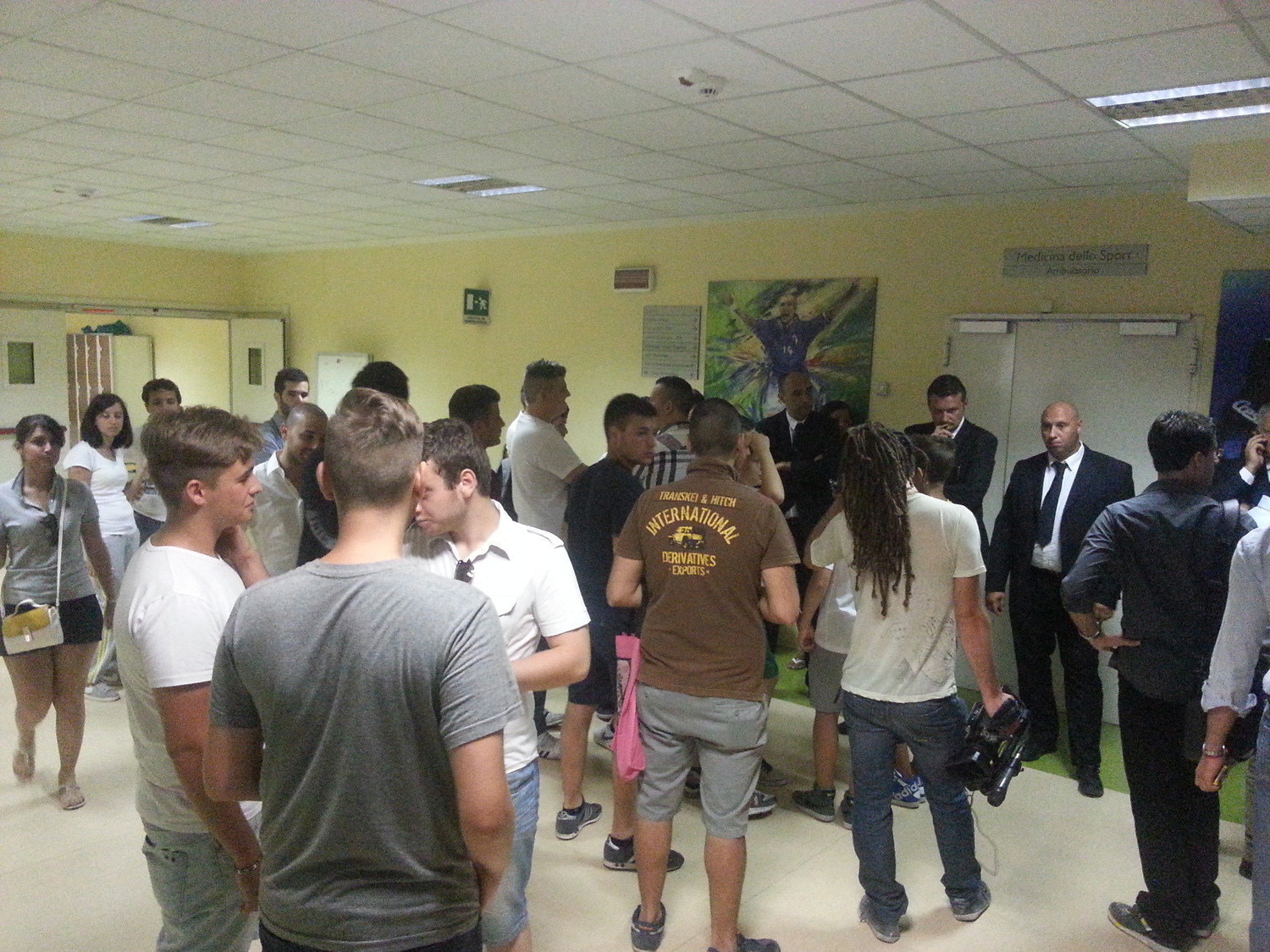 9.20 - Un gruppo di tifosi attende l'uscita del giocatore all'uscita dell'ambulatorio di Medicina dello Sport.