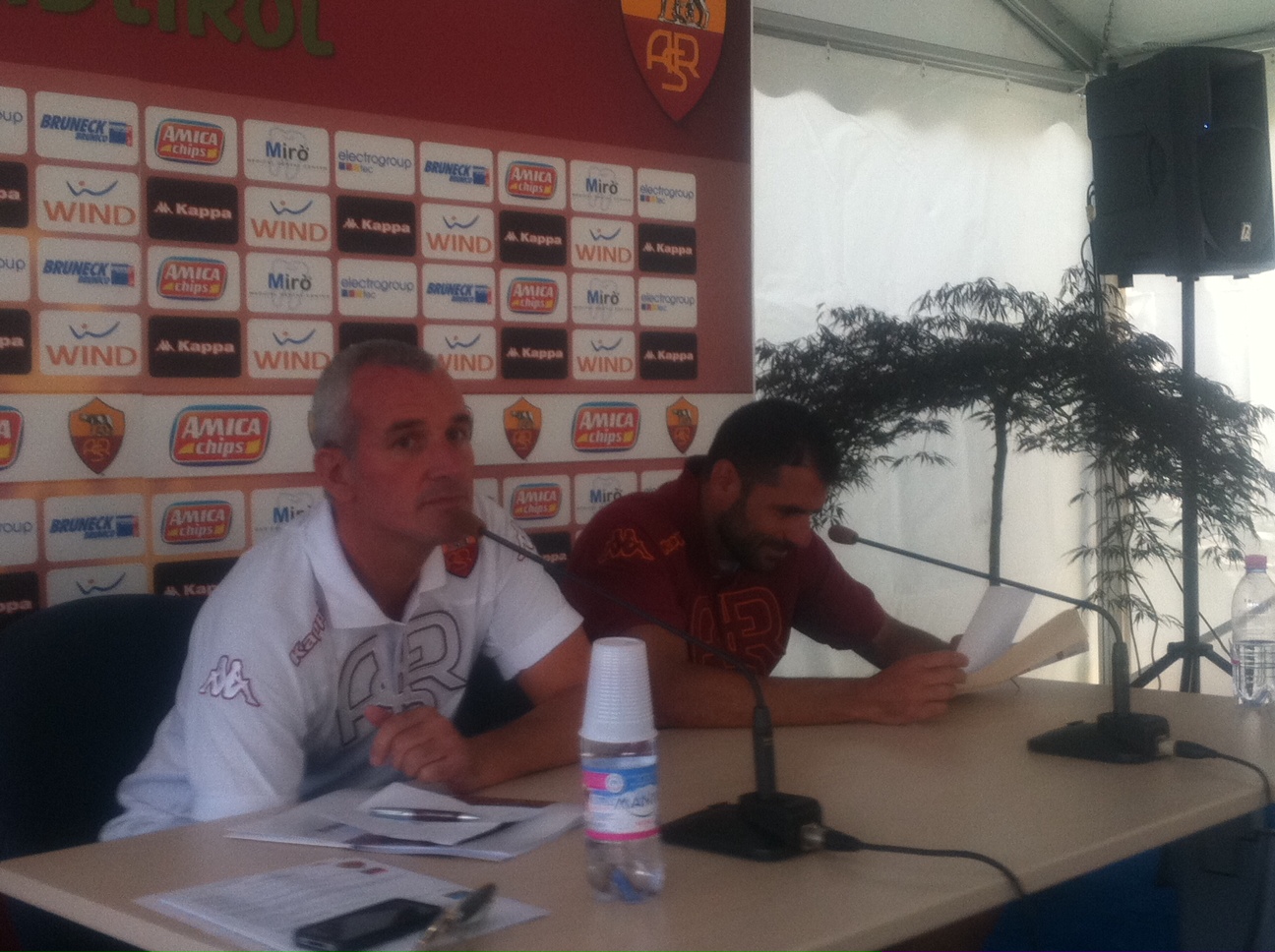 Simone Perrotta è arrivato in sala stampa per la prima conferenza del ritiro di Riscone. Segui la diretta testuale su Vocegiallorossa.it.