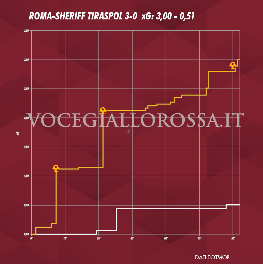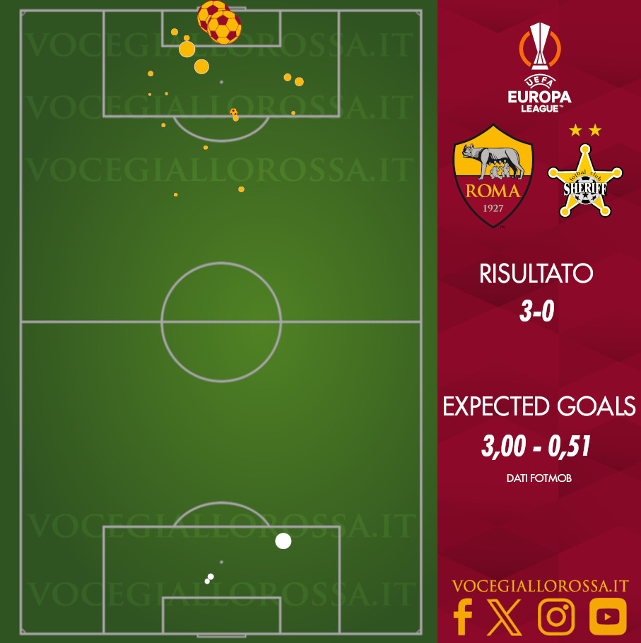 Roma-Sheriff Tiraspol 3-0 - Cosa dicono gli xG - Due gol quasi impossibili da sbagliare. GRAFICA!