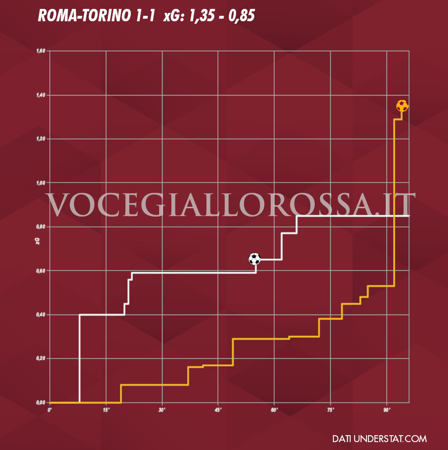 Negli ultimi anni è stato sviluppato un nuovo tipo di dato che può aiutare ad analizzare ciò che è successo nelle partite di calcio e il rendimento delle squadre. Si tratta del dato degli Expected Goals, vale a dire un numero che quantifica, in media, i gol che si segnano in una partita dai tiri che si prendono durante la gara. Un numero non indiscutibile, in quanto sono stati sviluppati diversi modelli che danno dei risultati diversi (anche se tendenzialmente simili), e al quale non si può ridurre l’intero andamento di un match, ma che può aiutare a dare contezza di determinate situazioni in modo più freddo. Ecco l’analisi di Roma-Torino, con i dati di understat.com.