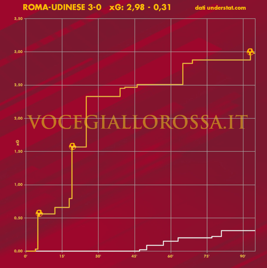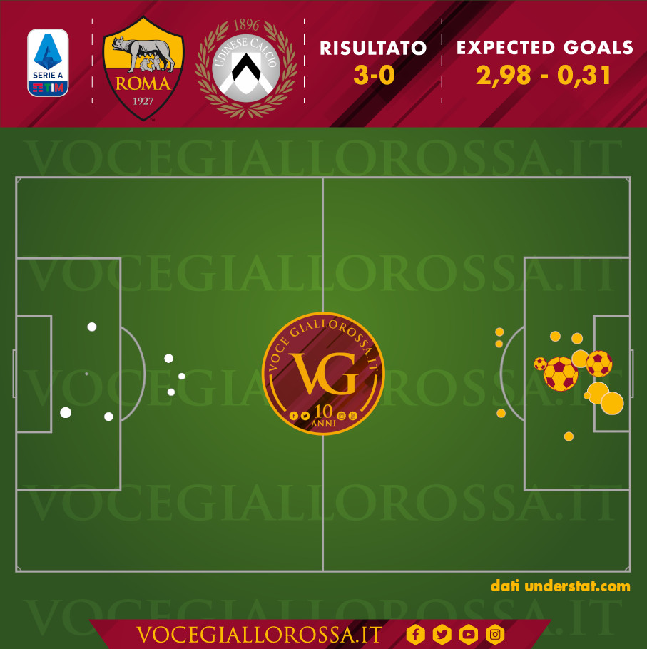 Roma-Udinese 3-0 - Cosa dicono gli xG - Il pericolo più grande è un non tiro dei bianconeri. Pedro e Veretout opposti tra loro