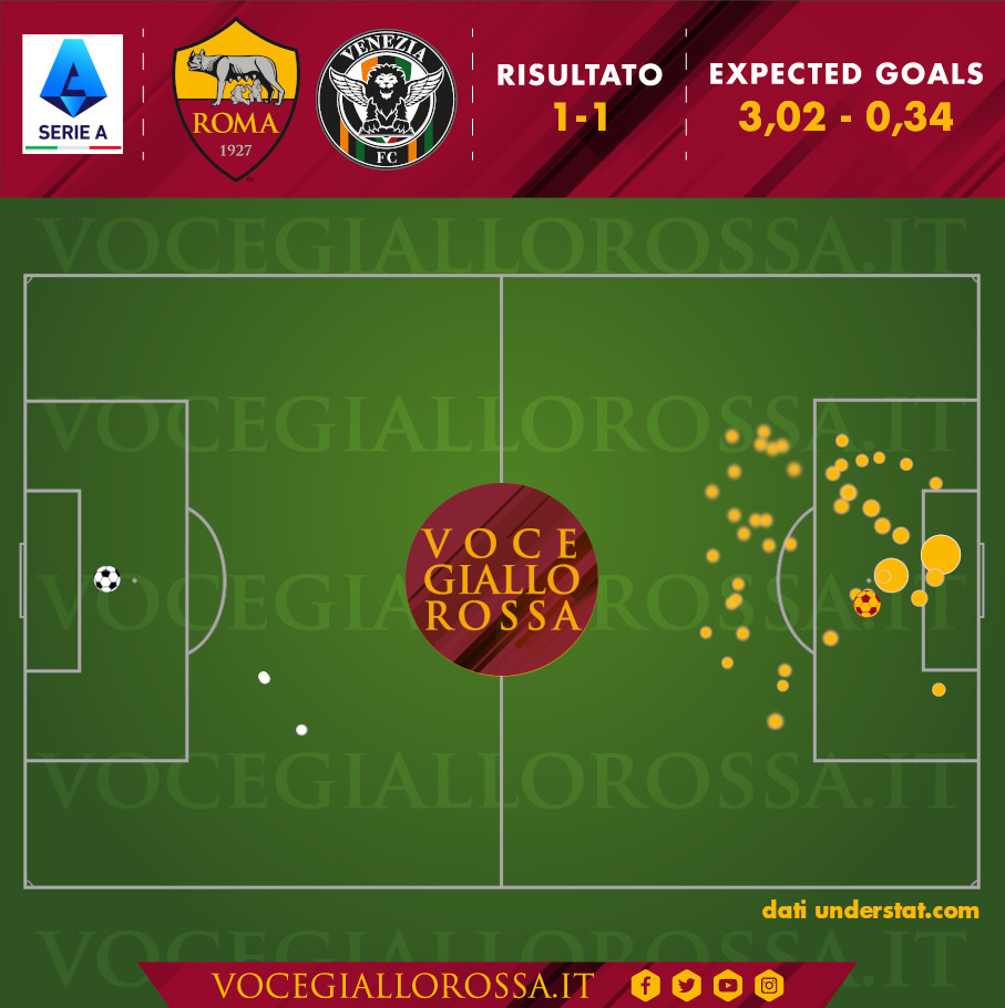 Roma-Venezia 1-1 - Cosa dicono gli xG - Una stagione in una partita. Continua il momento no di Abraham. GRAFICA!