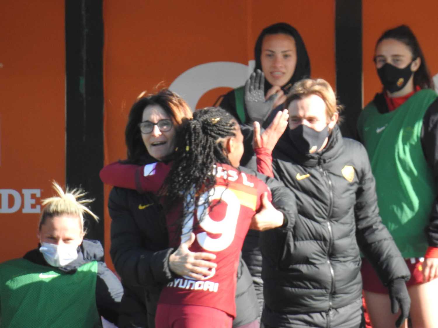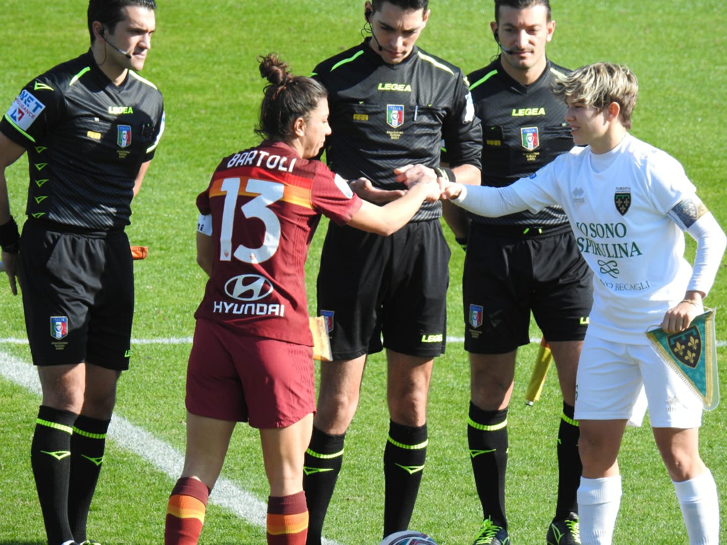 32' - Primo cambio forzato per Bavagnoli: fuori l'infortunata Erzen, dentro Soffia, che taglia il traguardo delle 50 presenze in maglia giallorossa.