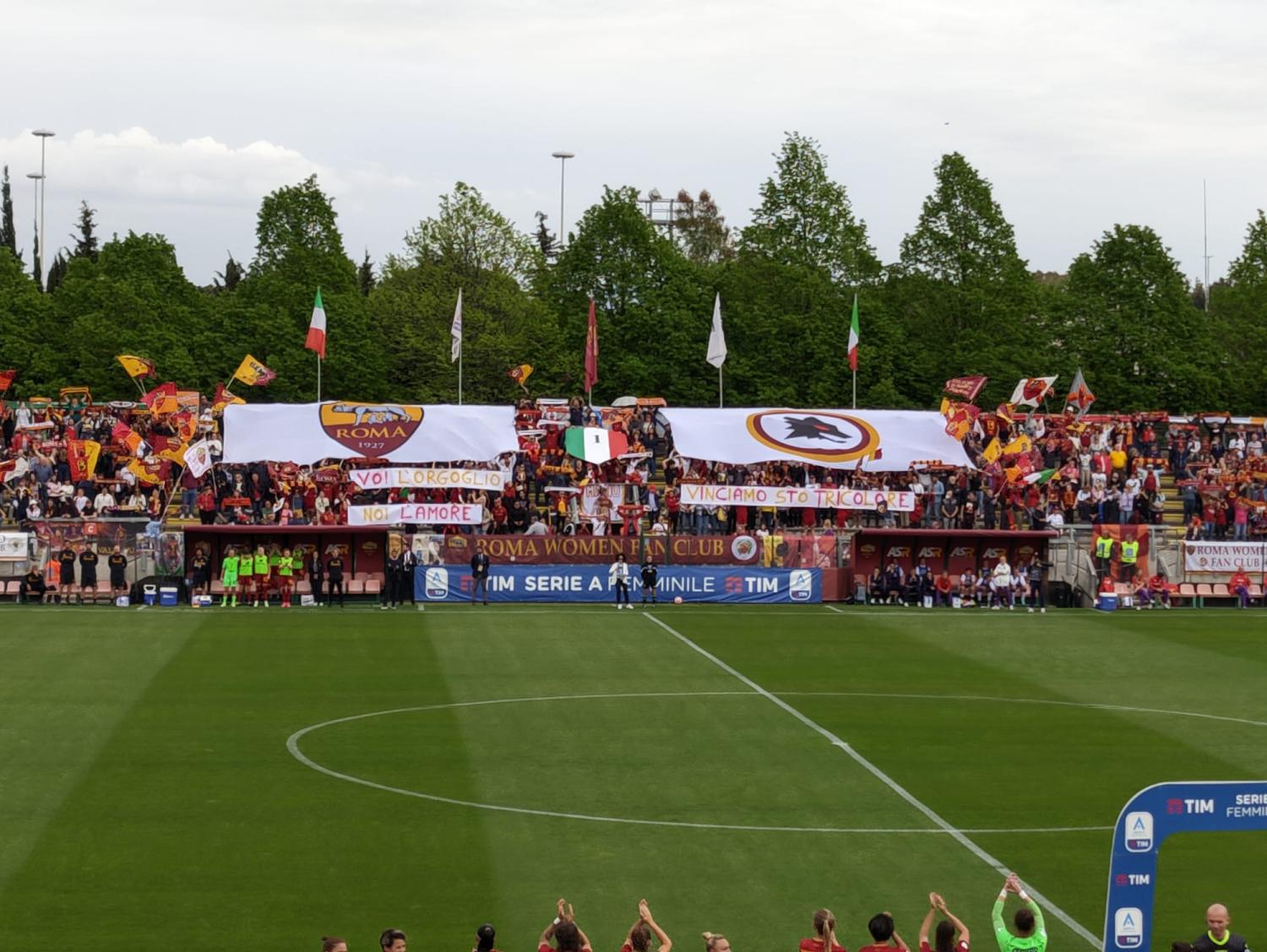 È tutto pronto al "Tre Fontane" per festeggiare il primo scudetto della Roma Femminile di Alessandro Spugna. Con 11 punti di vantaggio sulla Juventus a quattro giornate dalla fine, le giallorosse devono battere la Fiorentina per conquistare il titolo, indipendentemente dal risultato delle bianconere.