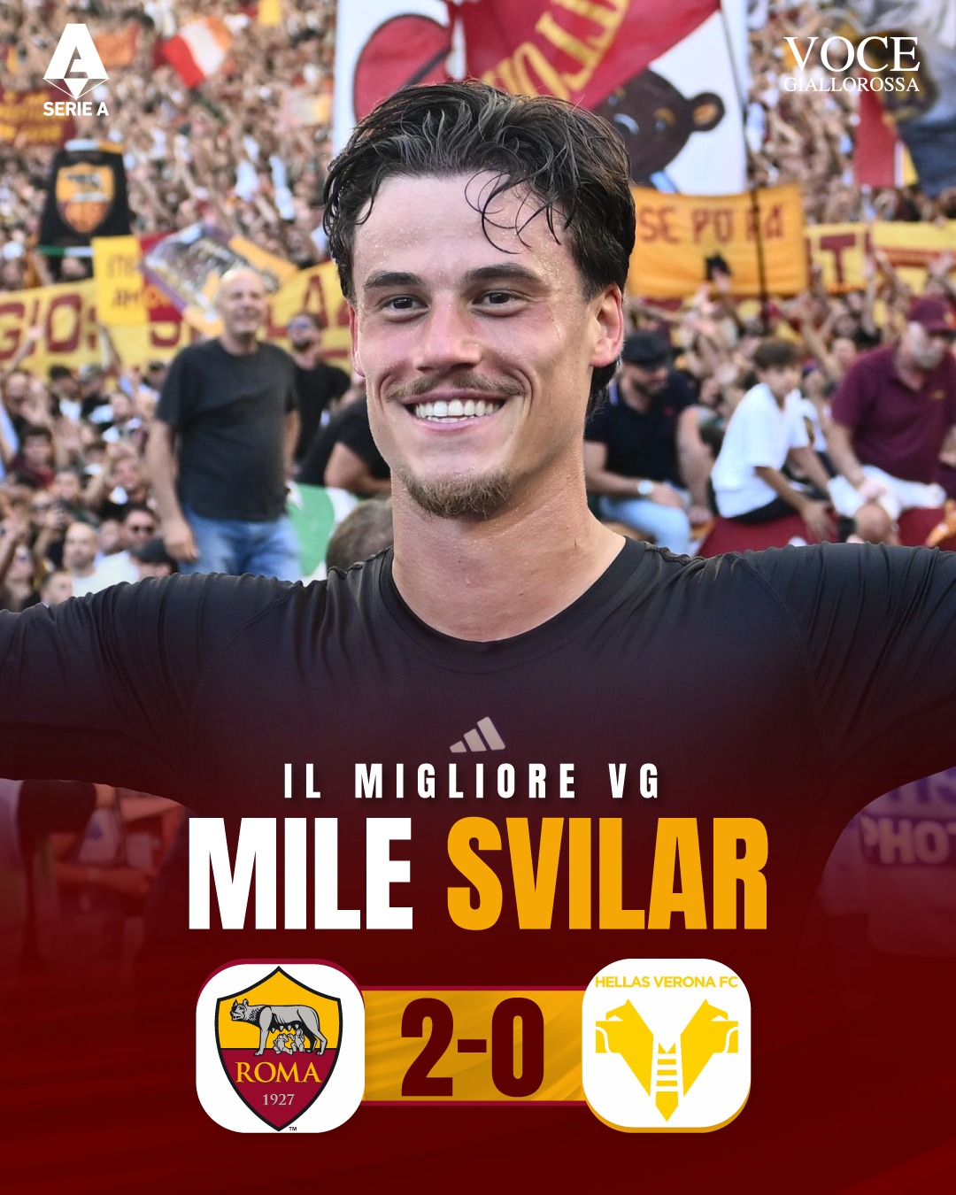 La Roma non si ferma più: dopo le vittorie contro la Lazio e il Nizza, arriva il terzo successo in una settimana per gli uomini di Gian Piero Gasperini. I giallorossi battono per 2-0 l'Hellas Verona con i gol di Artem Dovbyk e Matias Soulé. Grazie alle sue parate, Mile Svilar è stato eletto come #IlMiglioreVG del match attraverso i canali social di Vocegiallorossa.it: X, Instagram, Facebook e Threads. Per il portierone classe 1999 si tratta del secondo riconoscimento stagionale.