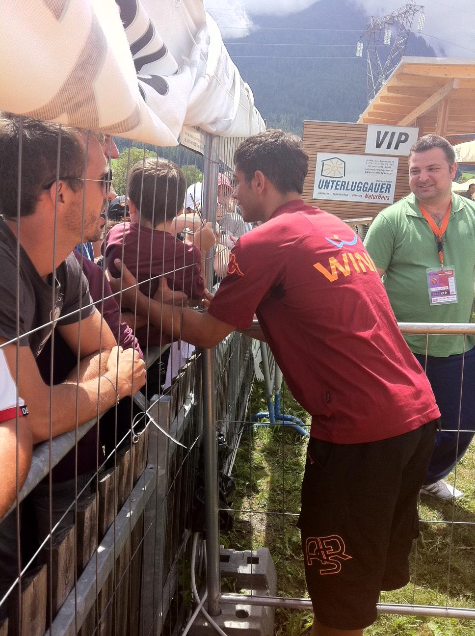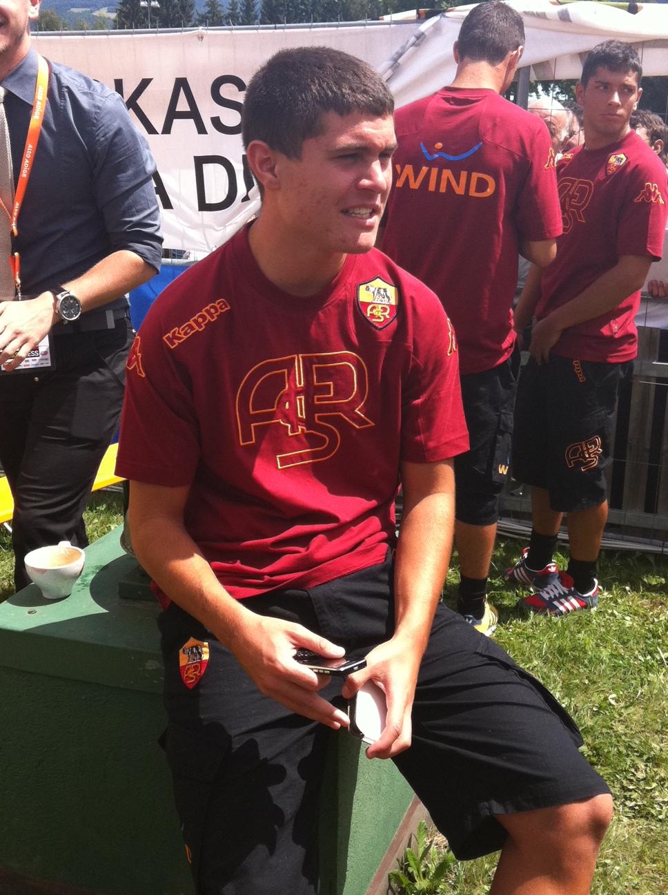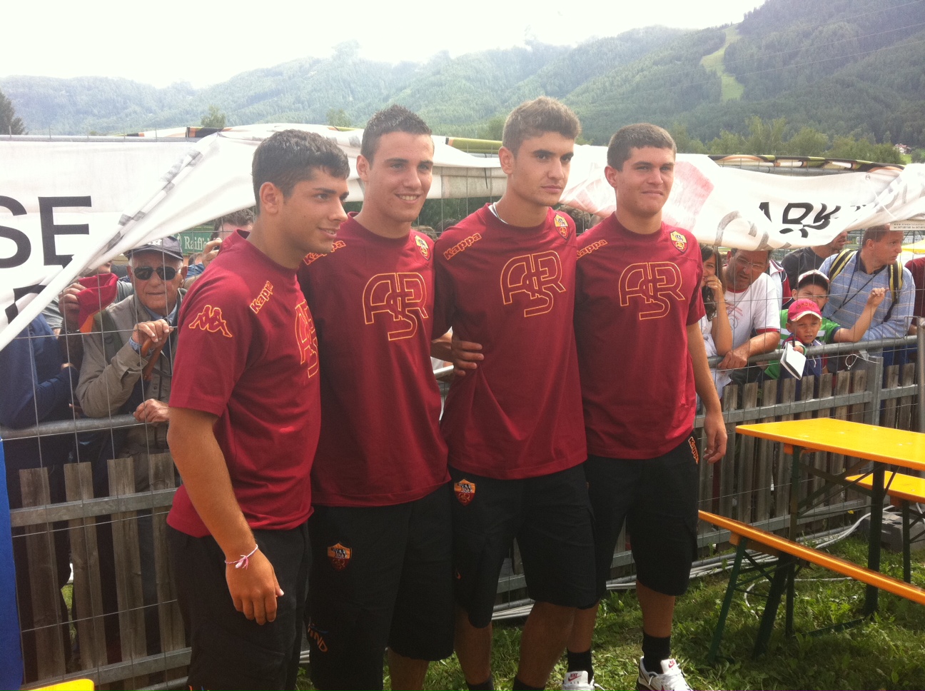 Dopo la conferenza stampa di questa mattina, i giovani calciatori della Roma Gianluca Caprari, Luca Antei, Valerio Verre, Federico Viviani, si sono fermati con i tifosi assiepati dietro alla rete di recinzione per firmare numerosi autografi. Il più acclamato è stato Caprari, l'unico dei quattro ad aver esordito in Serie A.