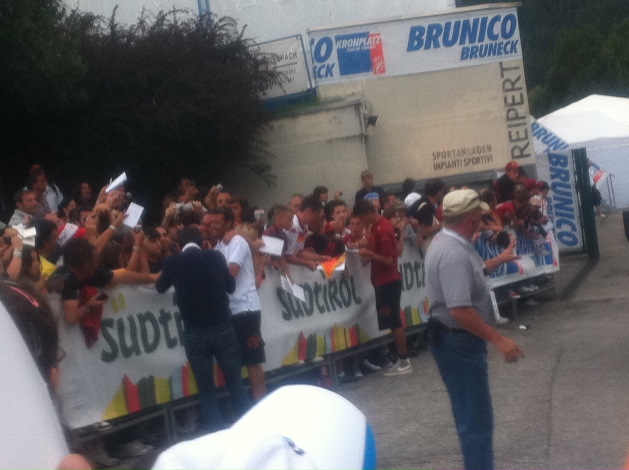 Luis Enrique alla fine dell'allenamento si è intrattenuto con i tifosi che lo hanno acclamato dedicandogli cori. Il tecnico spagnolo si è fermato a firmare gli autografi ai tanti tifosi giallorossi accorsi al Campo Sportivo di Riscone.
