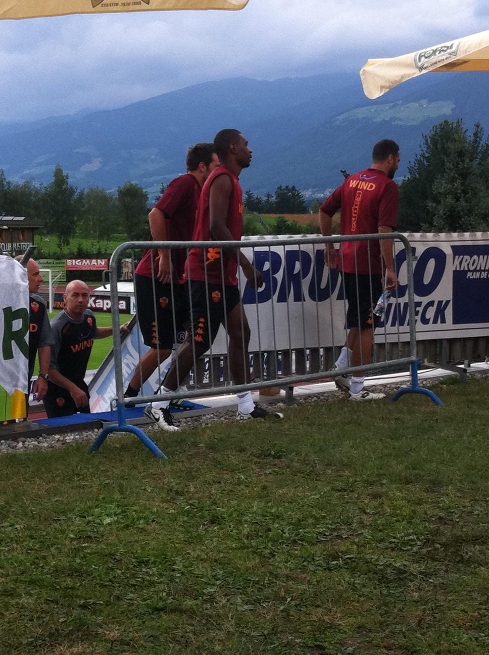 17.51 - Tutti presenti, tranne Julio Sergio. Differenziato per Brighi che ha raggiunto i compagni dopo qualche minuto