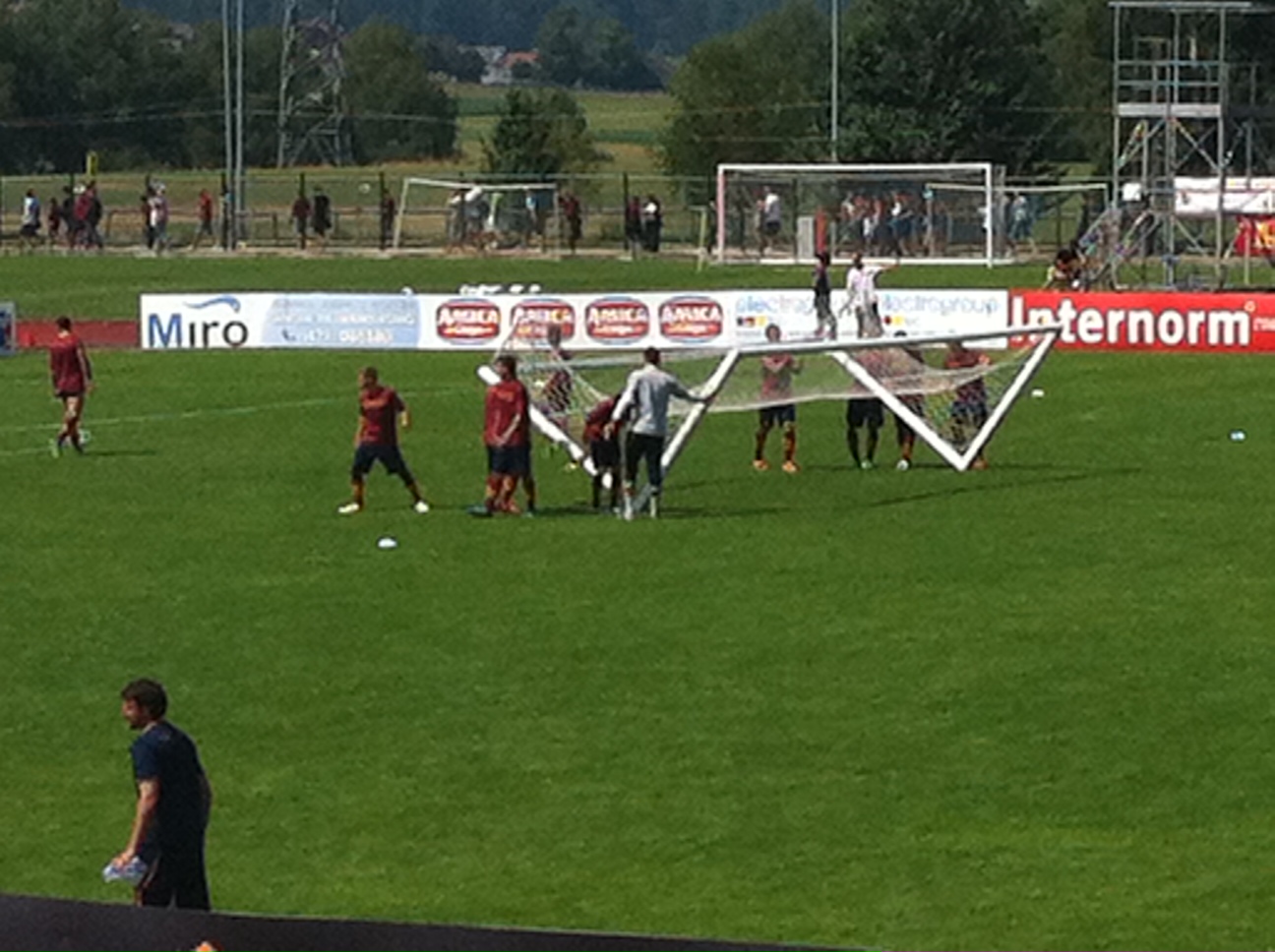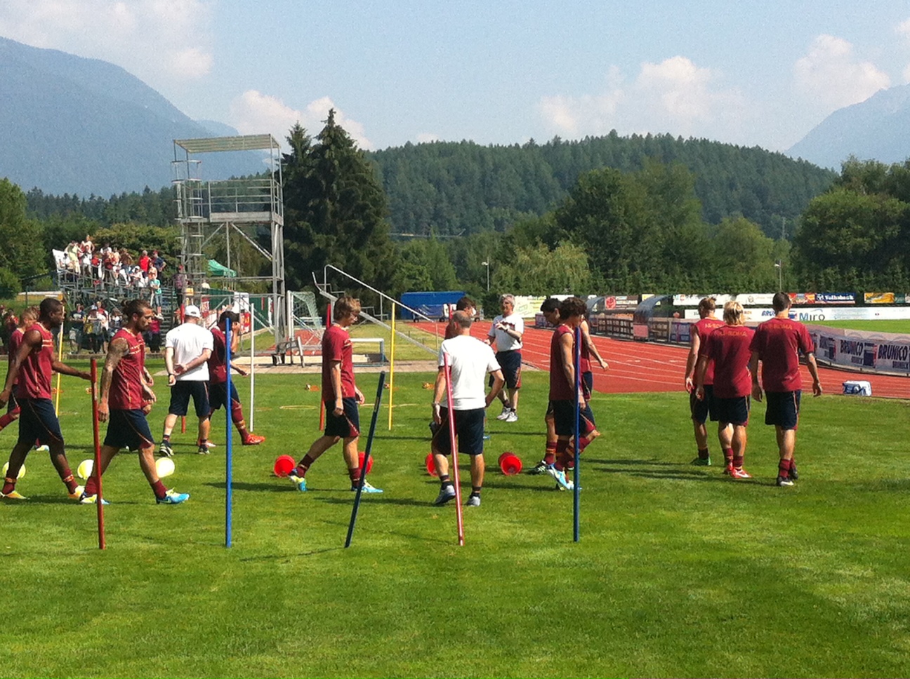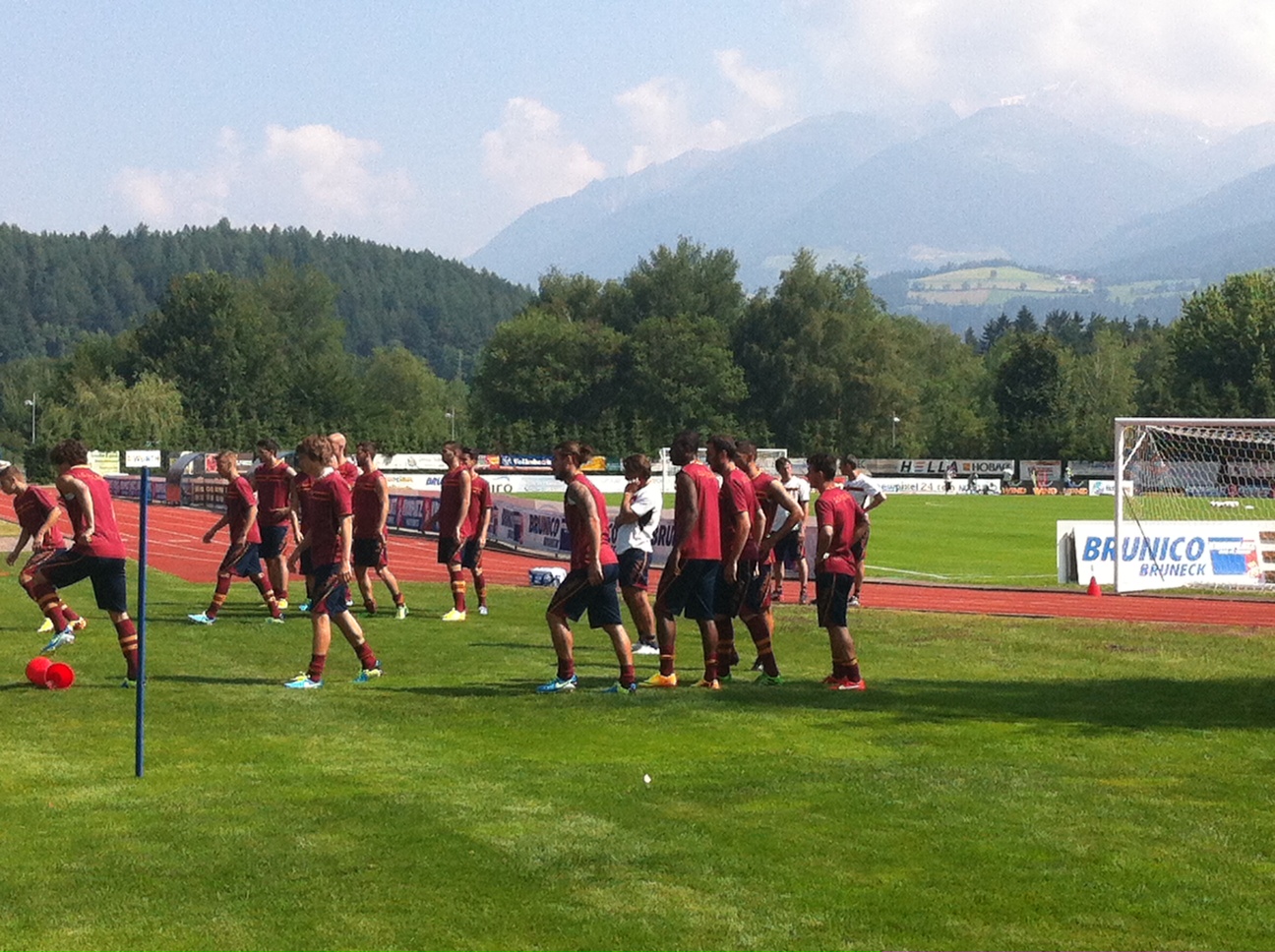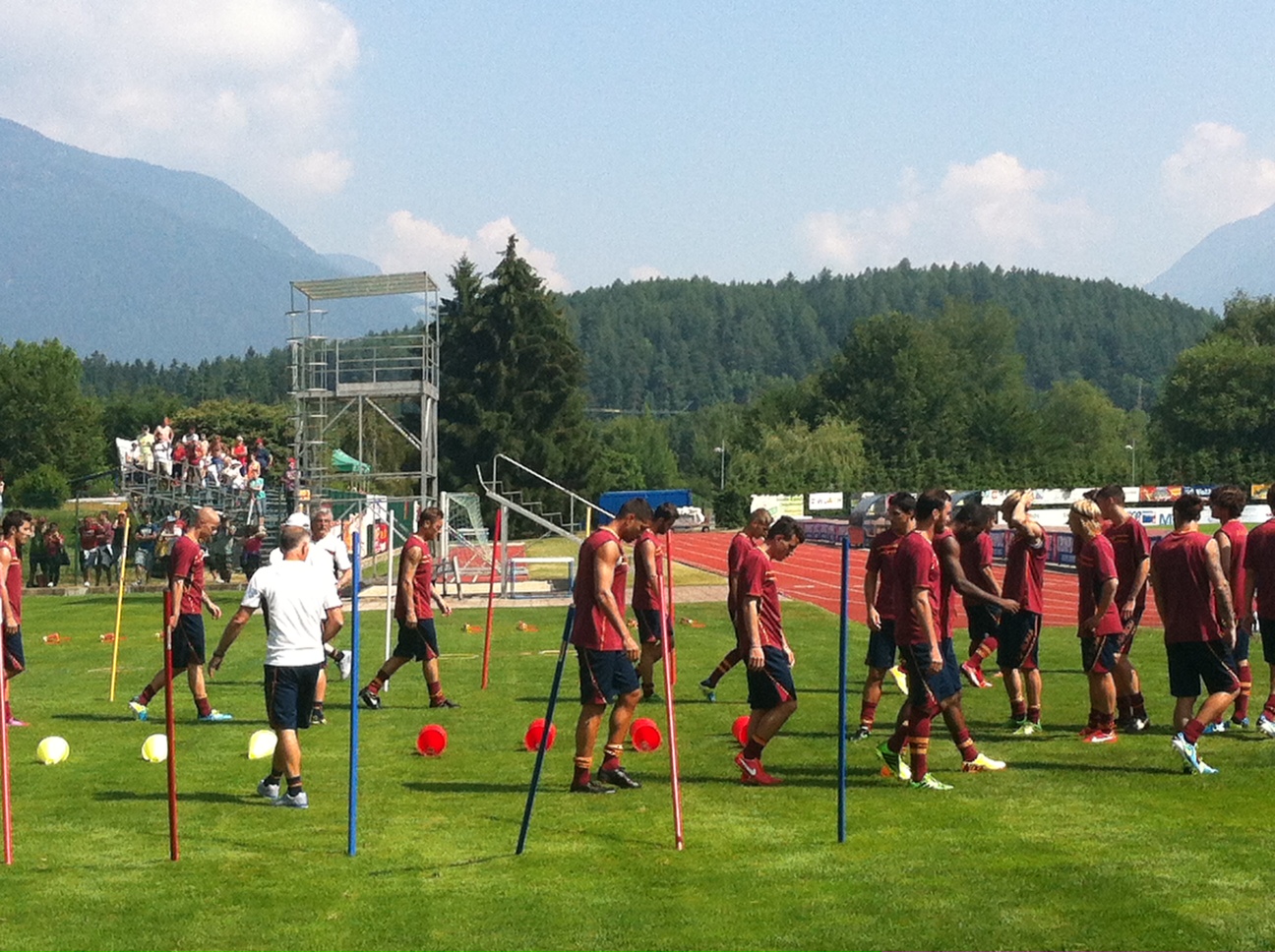 Quello che la Roma ha sostenuto questa mattina è stato un allenamento prettamente di rifinitura, in vista della prima amichevole stagionale contro la selezione locale di Riscone di Brunico, in programma per questo pomeriggio. Dopo una prima parte atletica, la squadra si è concentrata sulle prove tattiche: Rudi Garcia ha provato il 4-3-3 ed il 4-2-3-1. Lavoro in palestra per Maicon e Marquinhos, mentre Benatia ha effettuato differenziato