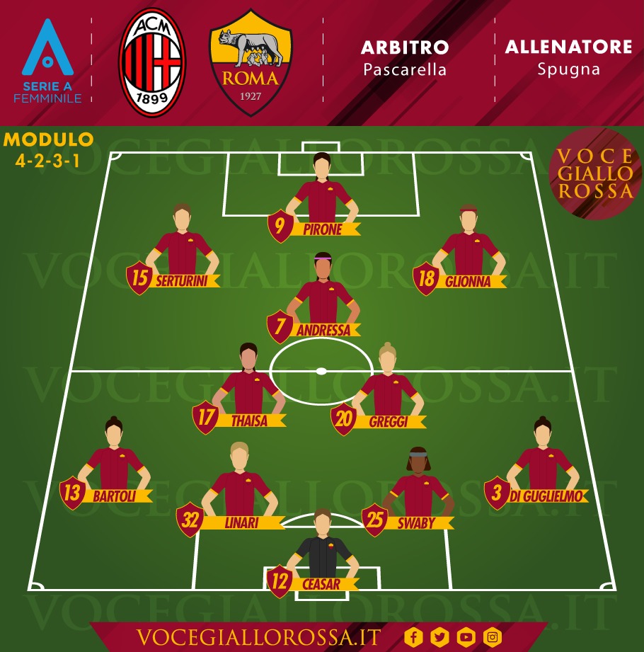 Serie A Femminile - Milan-Roma - Le probabili formazioni. GRAFICA!