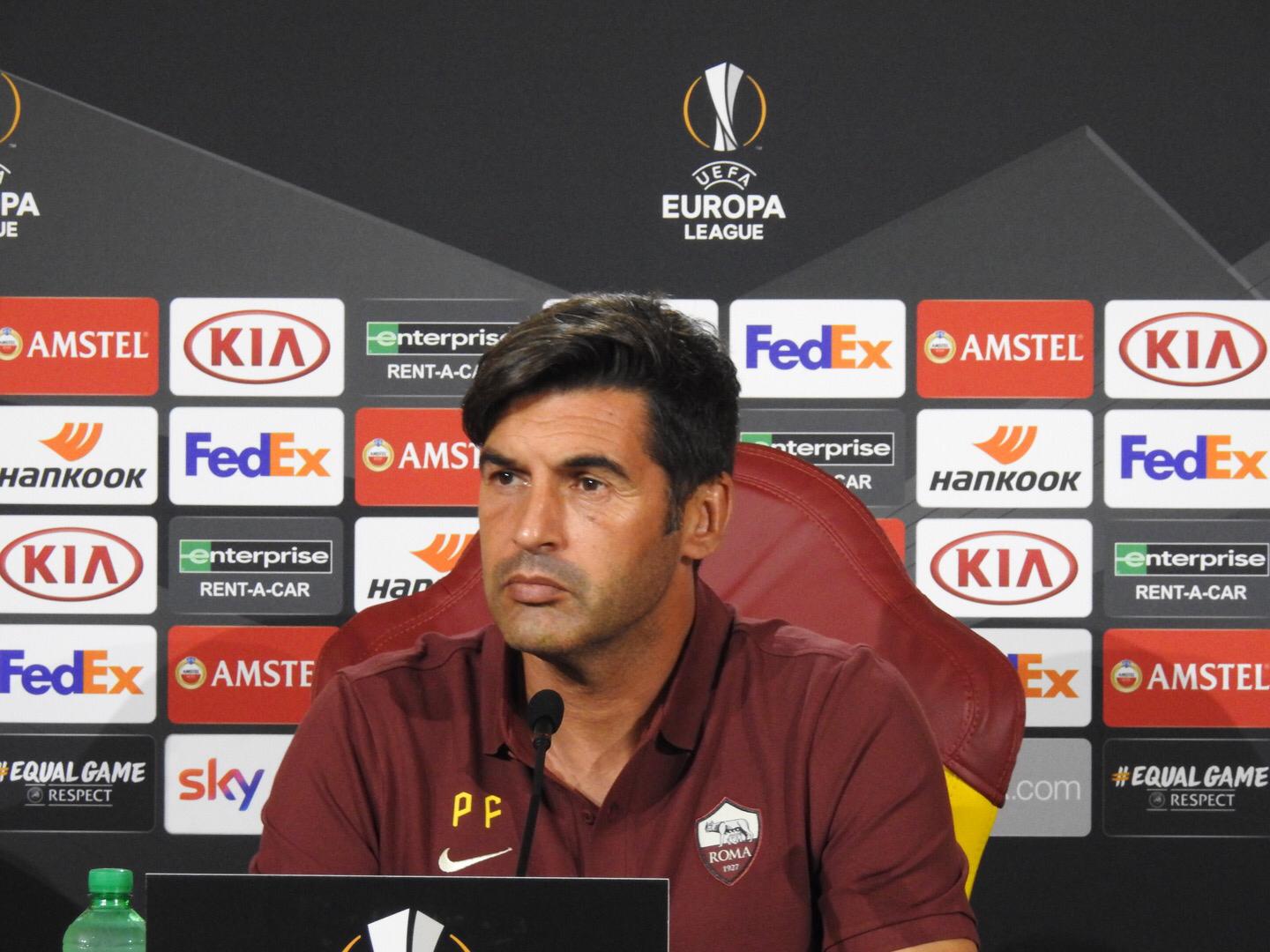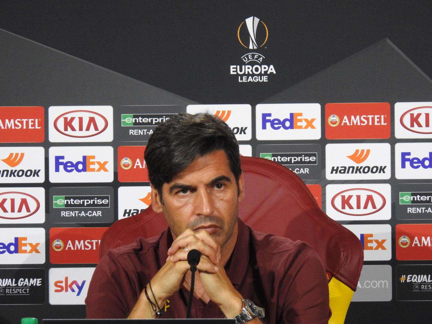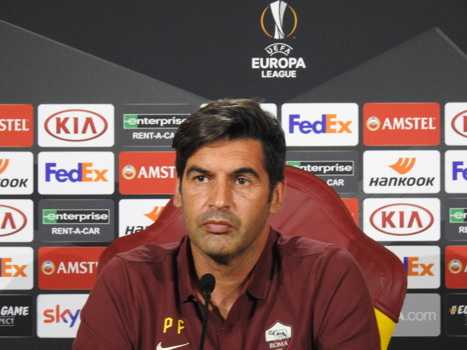 In vista della gara di Europa League in programma domani sera tra Roma e Istanbul Basaksehir, oggi il mister giallorosso Paulo Fonseca ed il Capitano Alessandro Florenzi hanno svolto la consueta conferenza stampa pre-match. Ecco la photogallery della conferenza.