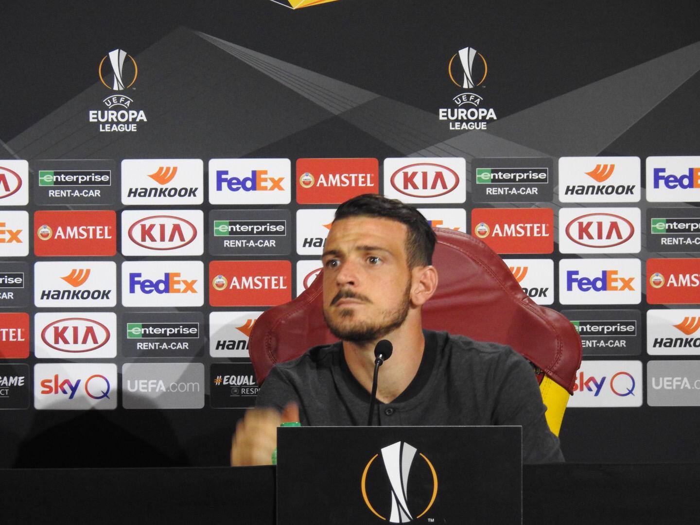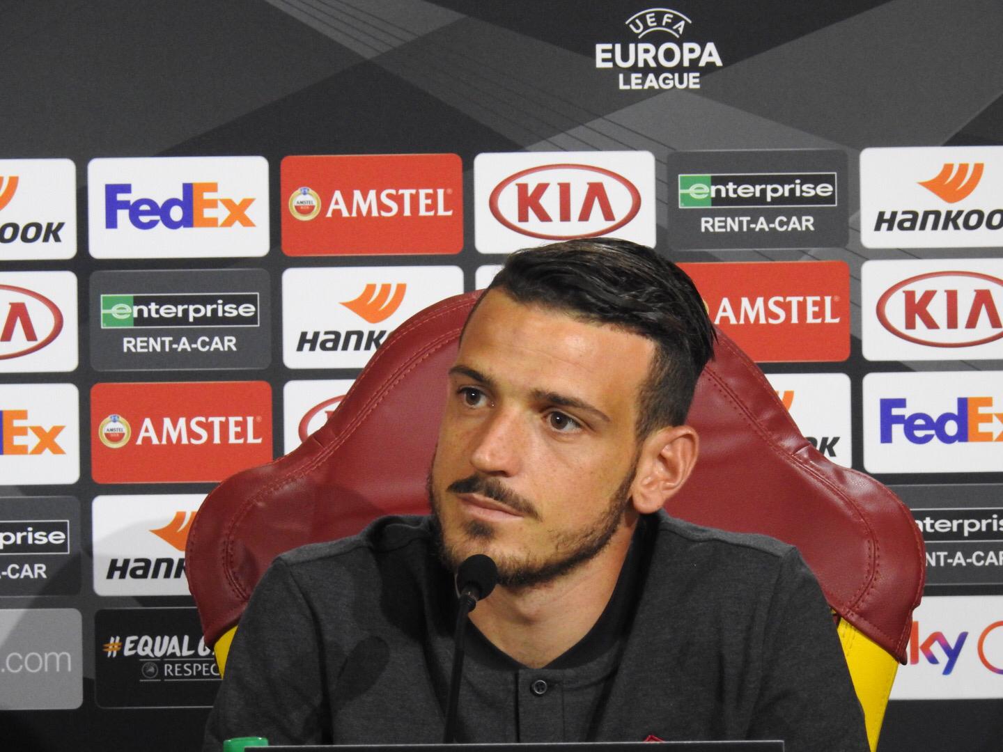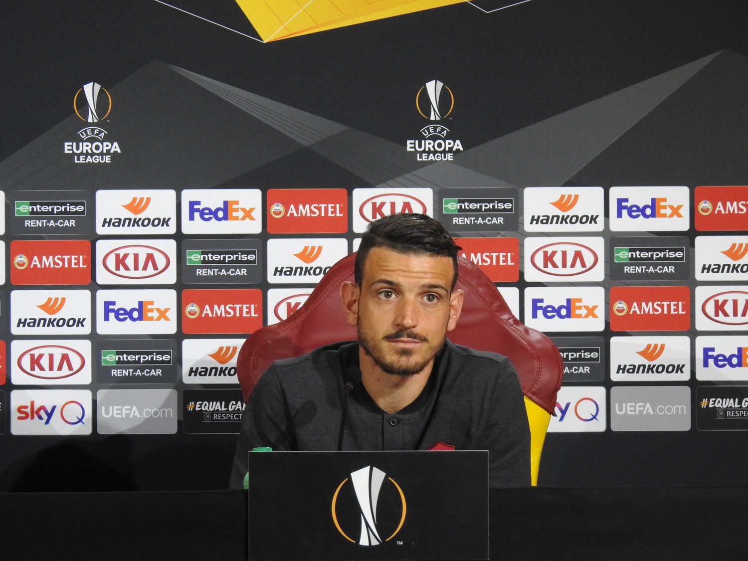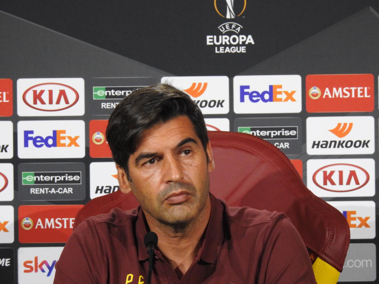 In vista della gara di Europa League in programma domani sera tra Roma e Istanbul Basaksehir, oggi il mister giallorosso Paulo Fonseca ed il Capitano Alessandro Florenzi hanno svolto la consueta conferenza stampa pre-match. Ecco la photogallery della conferenza.