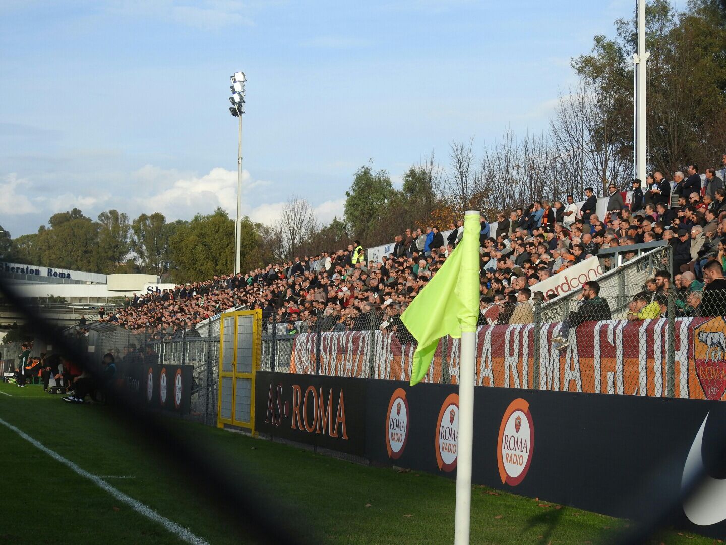È in corso a Trigoria la sfida di Youth League tra Roma e Cork City, che segna il ritorno della Primavera allo storico campo Tre Fontane: ecco le migliori immagini dell'incontro e della tribuna gremita dell'impianto!