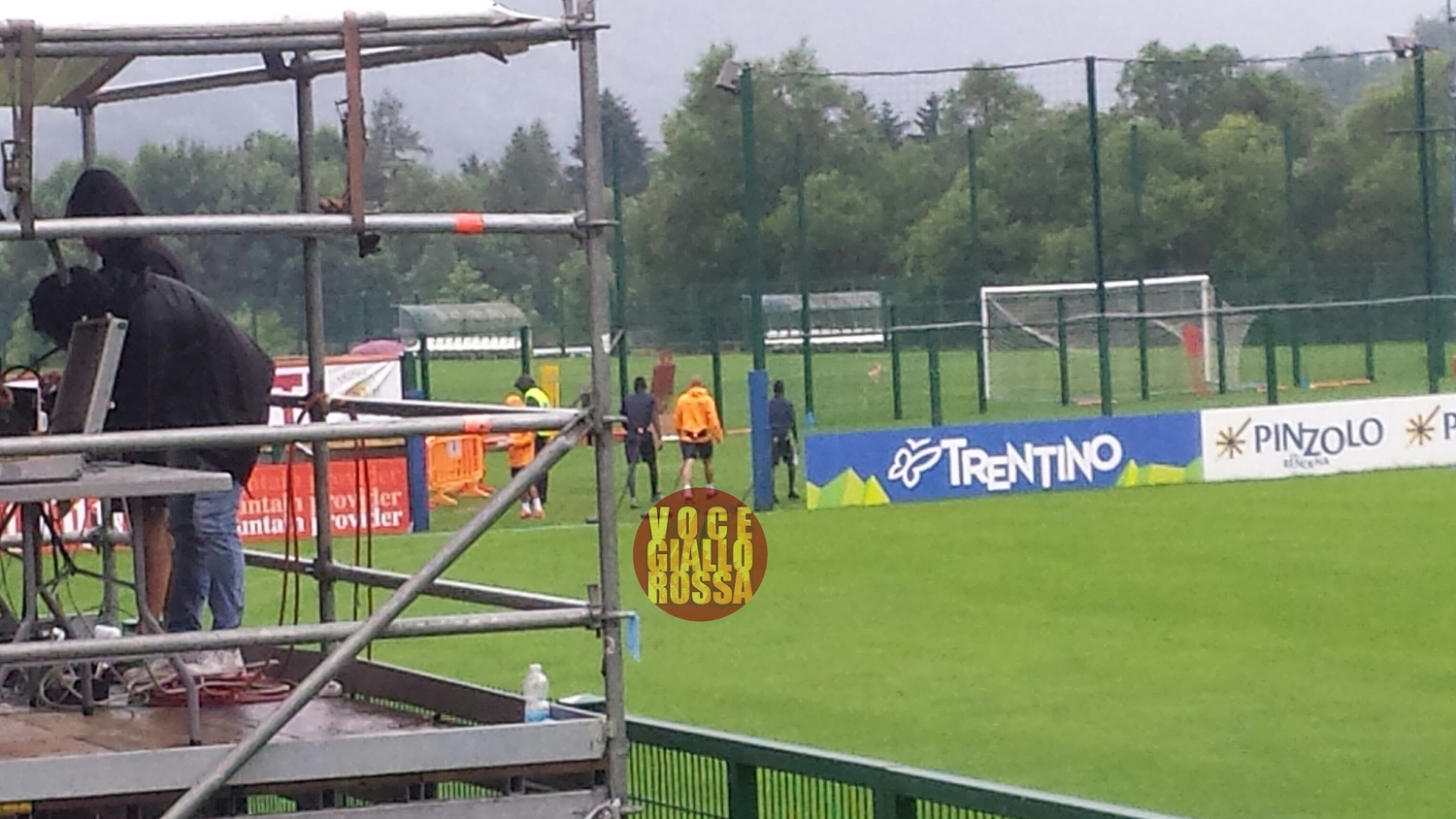 Dopo il lavoro differenziato in palestra, Francesco Totti ha proseguito il recupero dal risentimento muscolare con una corsa sul campo, trascinando un peso con l'elastico. Il Capitano, seguito personalmente dal preparatore Ed Lippie, è stato poi raggiunto da Nura e Rüdiger, sotto la supervisione di Norman.