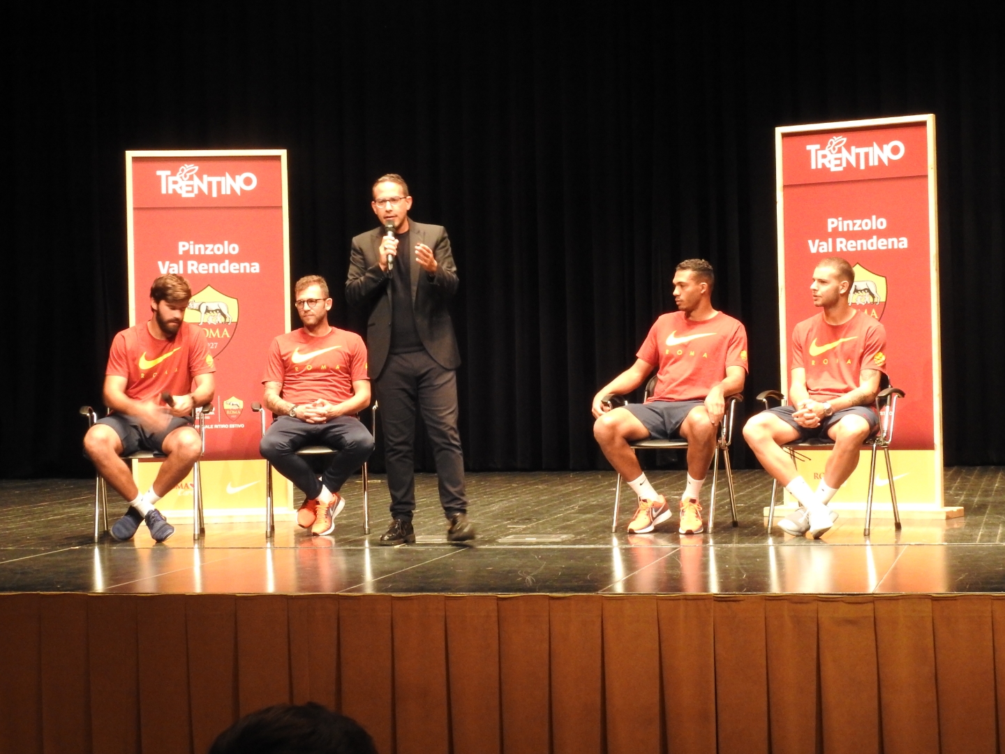 Nella serata odierna, intitolata I bambini incontrano i campioni giallorossi, al Paladolomiti di Pinzolo i giovani tifosi giallorossi hanno incontrato i loro beniamini. Presenti per la squadra capitolina sono stati Lobont, Juan Jesus, Alisson e Tumminello. Vocegiallorossa.it era presente in loco con i suoi inviati sul posto e vi ha fornito tutti i contributi del caso. Grazie per aver seguito la diretta della serata attraverso il nostro canale FACEBOOK.