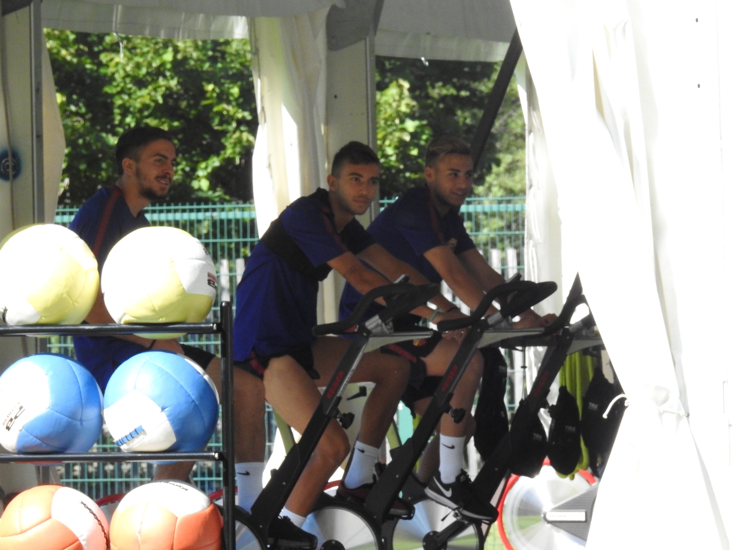 10:41 - Una parte del gruppo è in palestra, l'altra fa lavoro atletico. Cyclette per Florenzi.