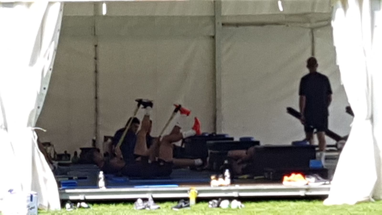 9:46 - Valeau, Ricci e Antonucci lavorano in palestra.