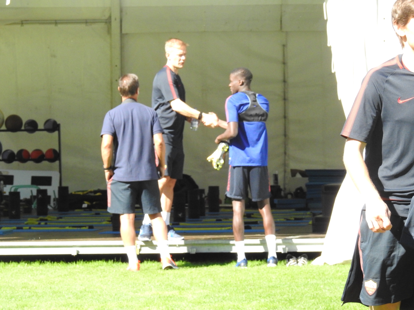 10:00 - I portieri lavorano sulle prese dopo il rimbalzo del pallone, centrocampisti e attaccanti lavorano con Norman. Un tifoso dice a Luca Pellegrini che dovrebbe essere il titolare, lui ride imbarazzato.