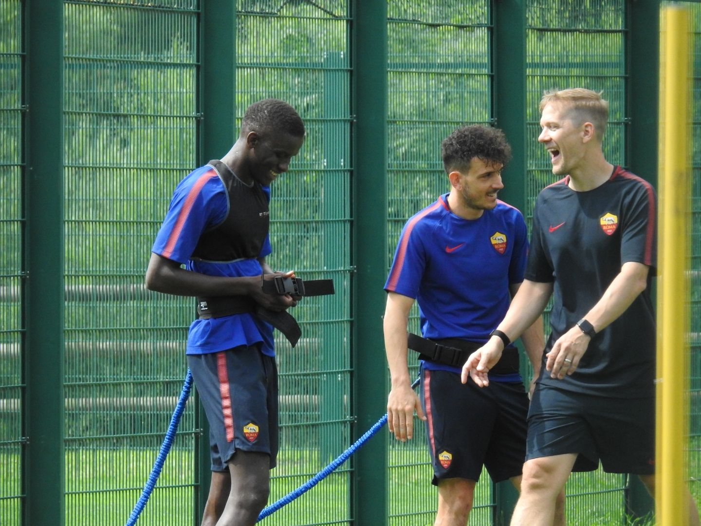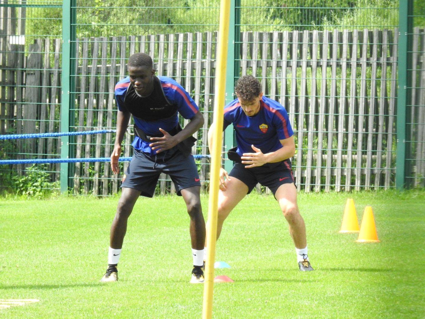 Durante l'allenamento del mattino Alessandro Florenzi e Keba (dopo aver inizialmente partecipato alla fase tattica con il gruppo), hanno lavorato a parte, agli ordini di Norman sulla forza muscolare. Vocegiallorossa.it vi propone in esclusiva gli scatti dell'esercitazione.