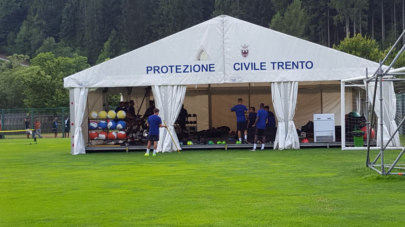 17:35 - Sul Campo A si allenano in una metà campo i portieri, nell'altra è stato allestito un calcio tennis.