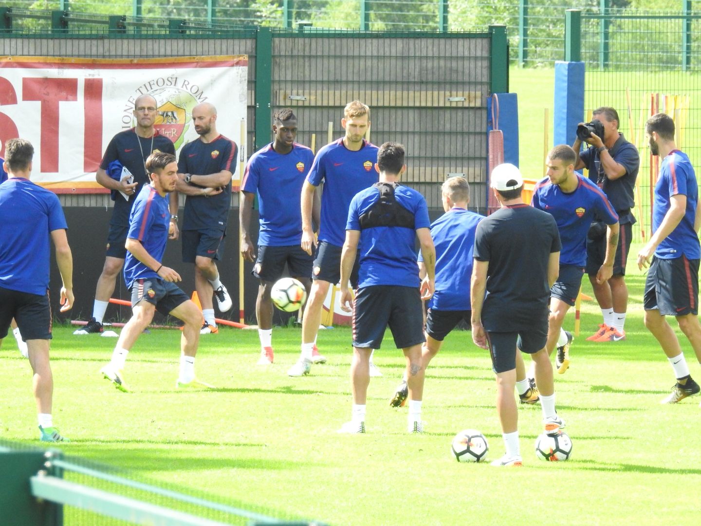 10:38 - Esercitazione tattica: trasmissione di palla. Ecco la formazione considerabile titolare: Alisson, Peres, Jesus, Castan, Pellegrini; Ricci, Gonalons, Gerson; Keba, Tumminello, Perotti. Recuperato Antonucci che nei giorni scorsi si allenava a parte.