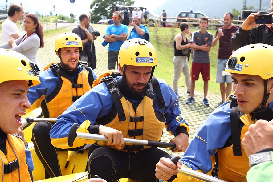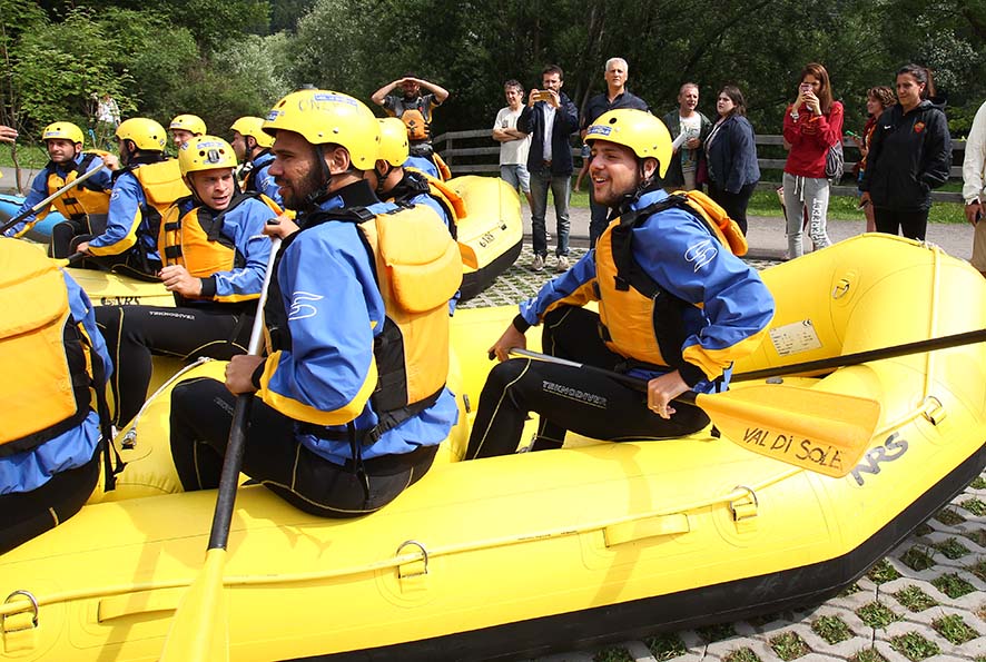 Attività di team building per la Roma, che nel pomeriggio si è recata nei pressi di Dimaro per un pomeriggio dedicato al rafting. Vocegiallorossa.it vi propone i migliori scatti dell'evento!