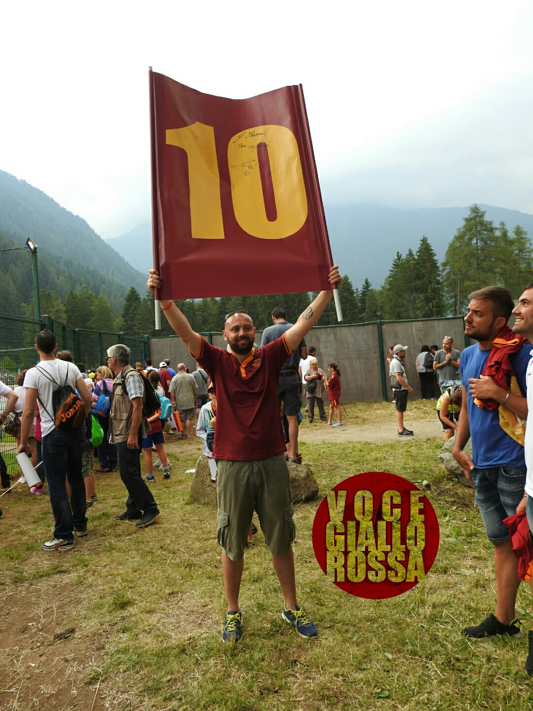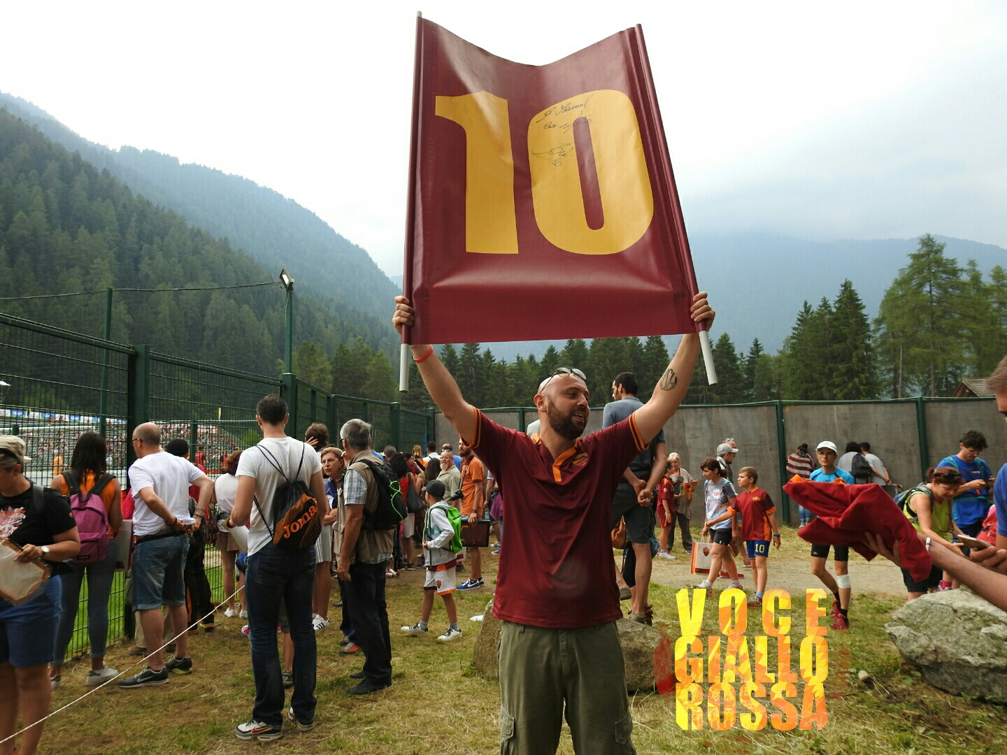 Sono tanti i tifosi della Roma che hanno seguito i propri beniamini a Pinzolo durante il ritiro estivo. Fra questi ce n'è uno molto legato al capitano giallorosso che ha portato con sé uno striscione con il numero 10 di Francesco Totti.