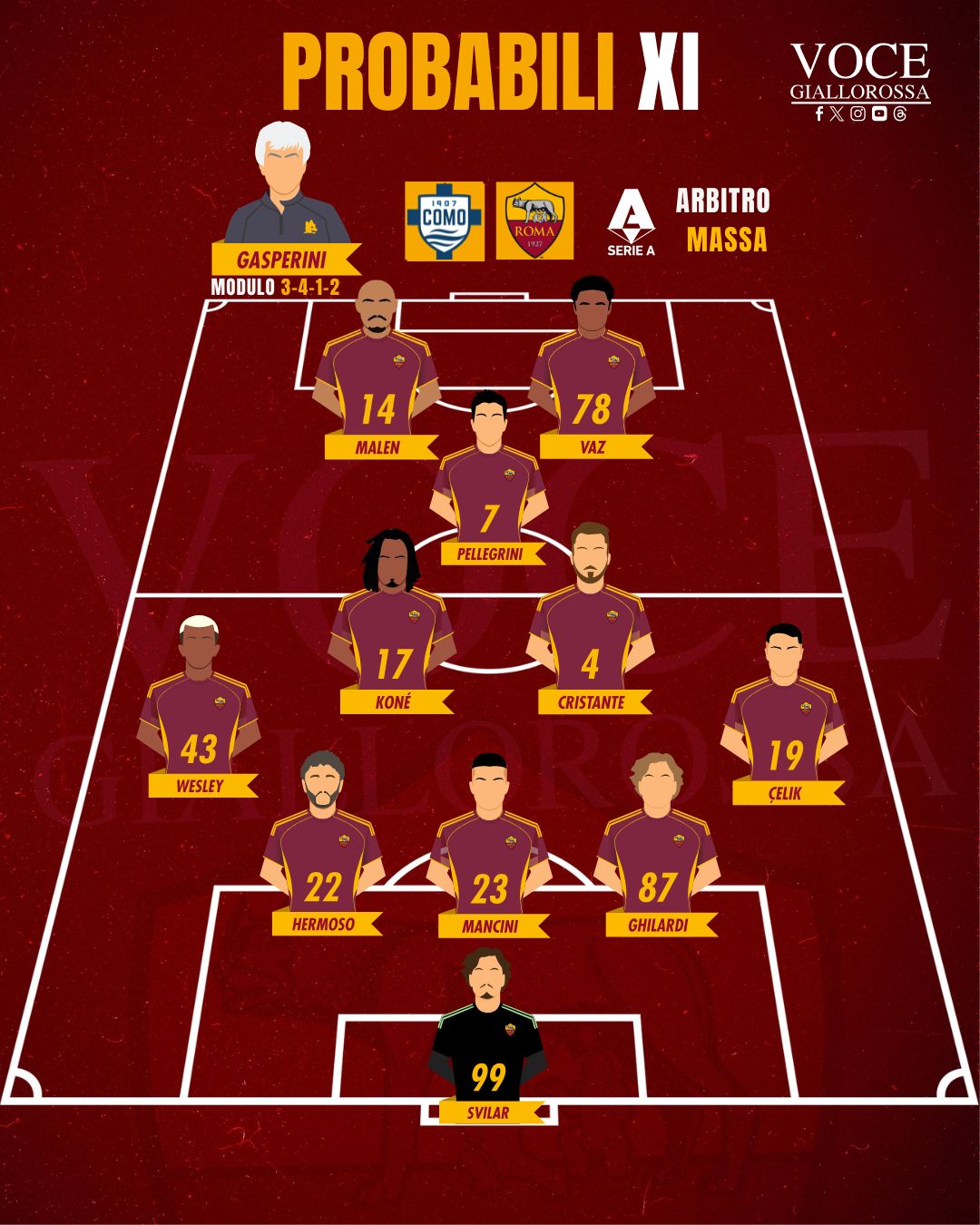 ROMA (3-4-2-1): Svilar; Ghilardi, Mancini, Hermoso; Celik, Cristante, Koné, Wesley;