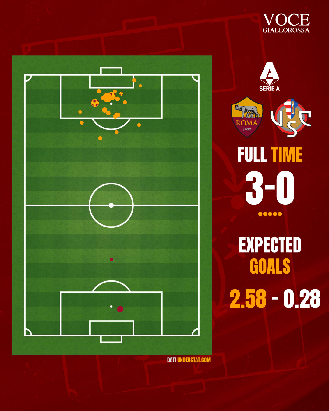 Roma-Cremonese 3-0 - Cosa dicono gli xG - Un punteggio conforme ai numeri. Miglior prova difensiva della stagione. GRAFICA!