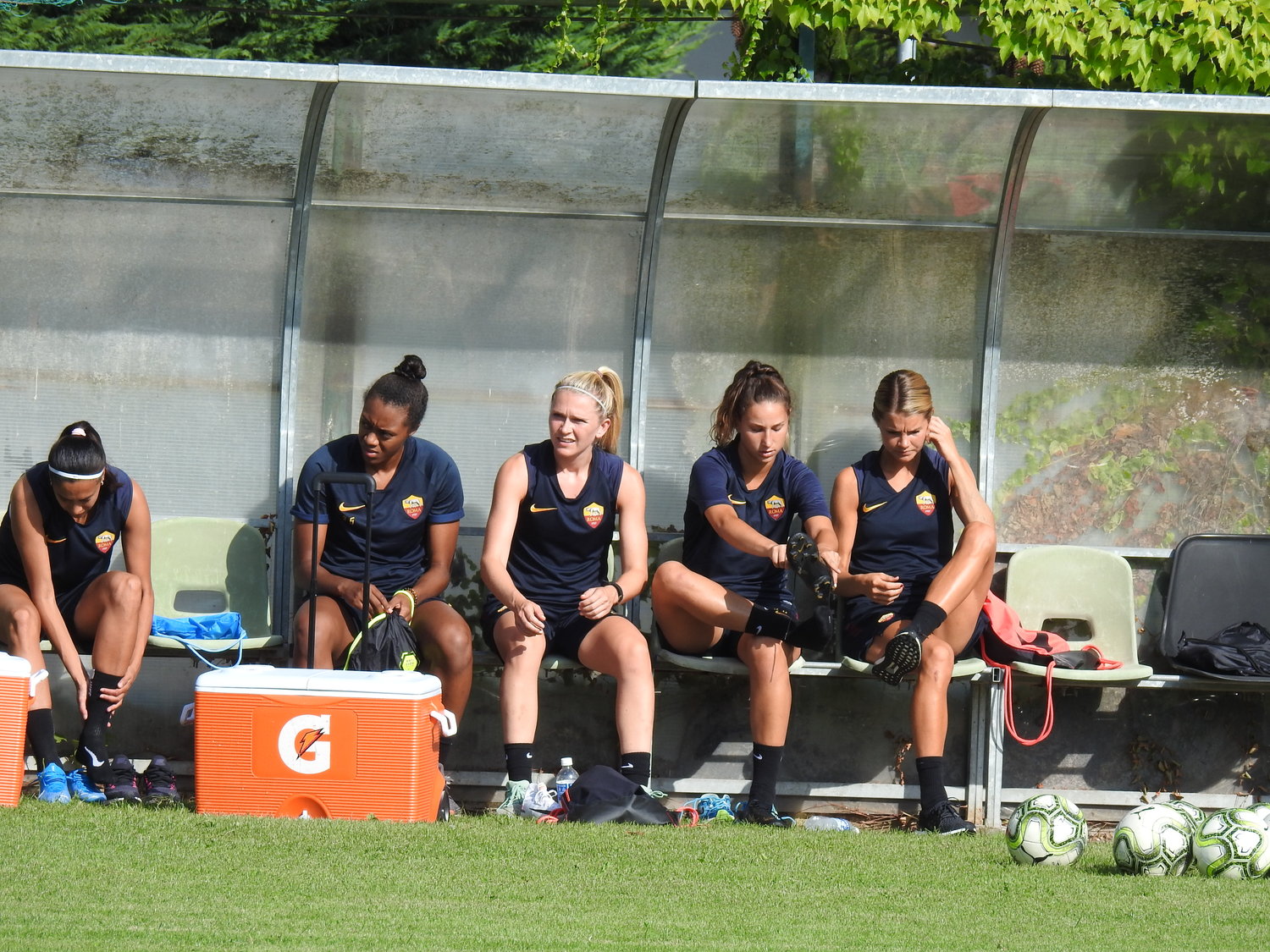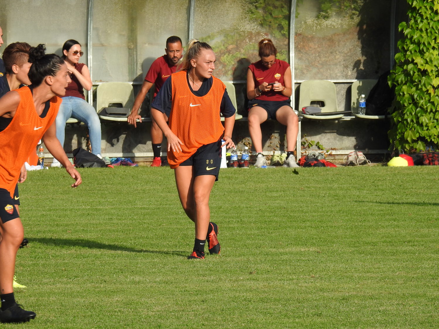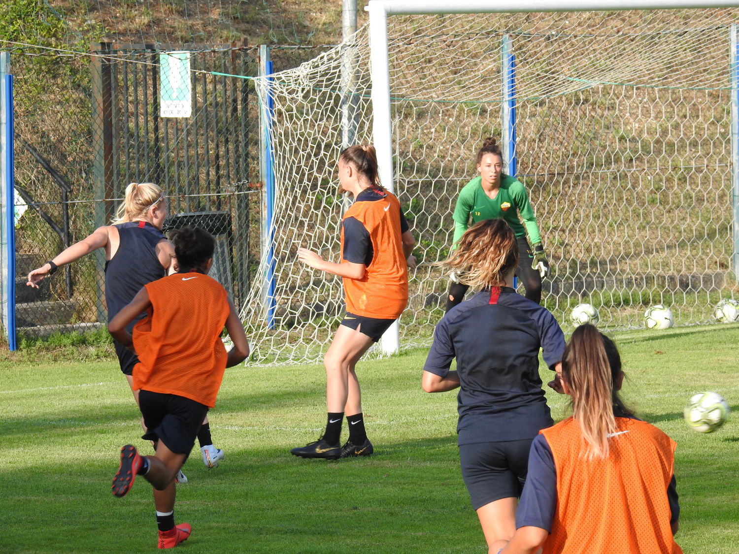 Dopo l'allenamento di questa mattina, le ragazze di coach Bavagnoli sono tornate in campo per l'allenamento pomeridiano. Dopo un inizio in palestra, il gruppo si è spostato in campo per una serie di esercitazioni con il pallone. A seguire, si è svolta una partitella che ha visto vincitrici le blu per 5-1 contro le arancio. In grande spolvero Vanessa Bernauer, autrice di una tripletta. Da segnalare, per le arancio, la bellissima punizione messa a segno da Andressa Alves. Non si sono allenate con le compagne Bonfantini (contrattura), Soffia (affaticamento) e Zecca (allenamento a parte).