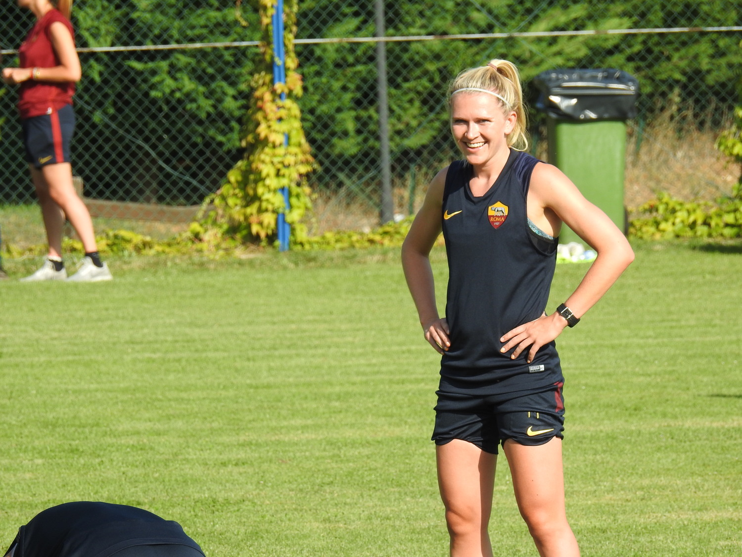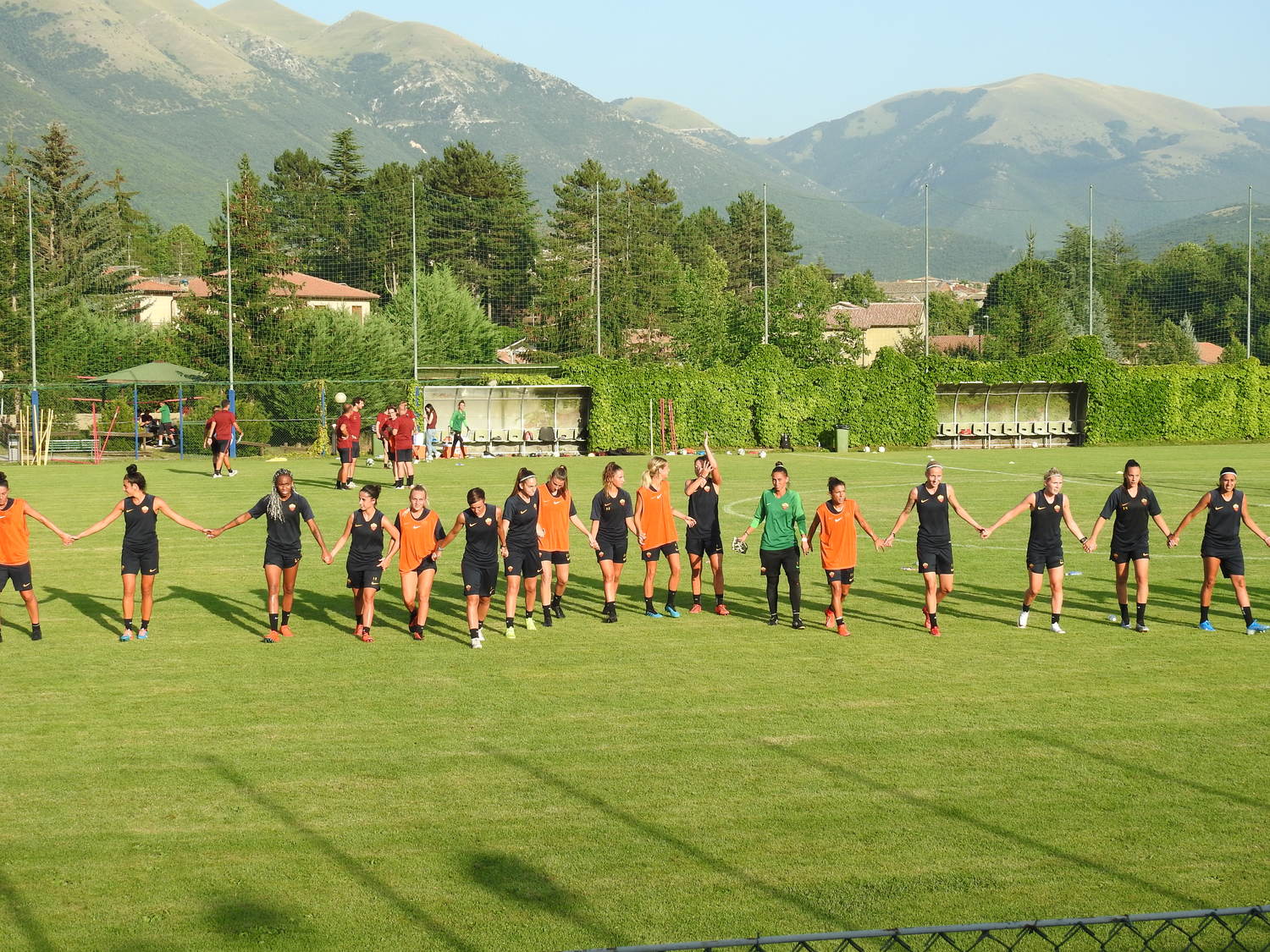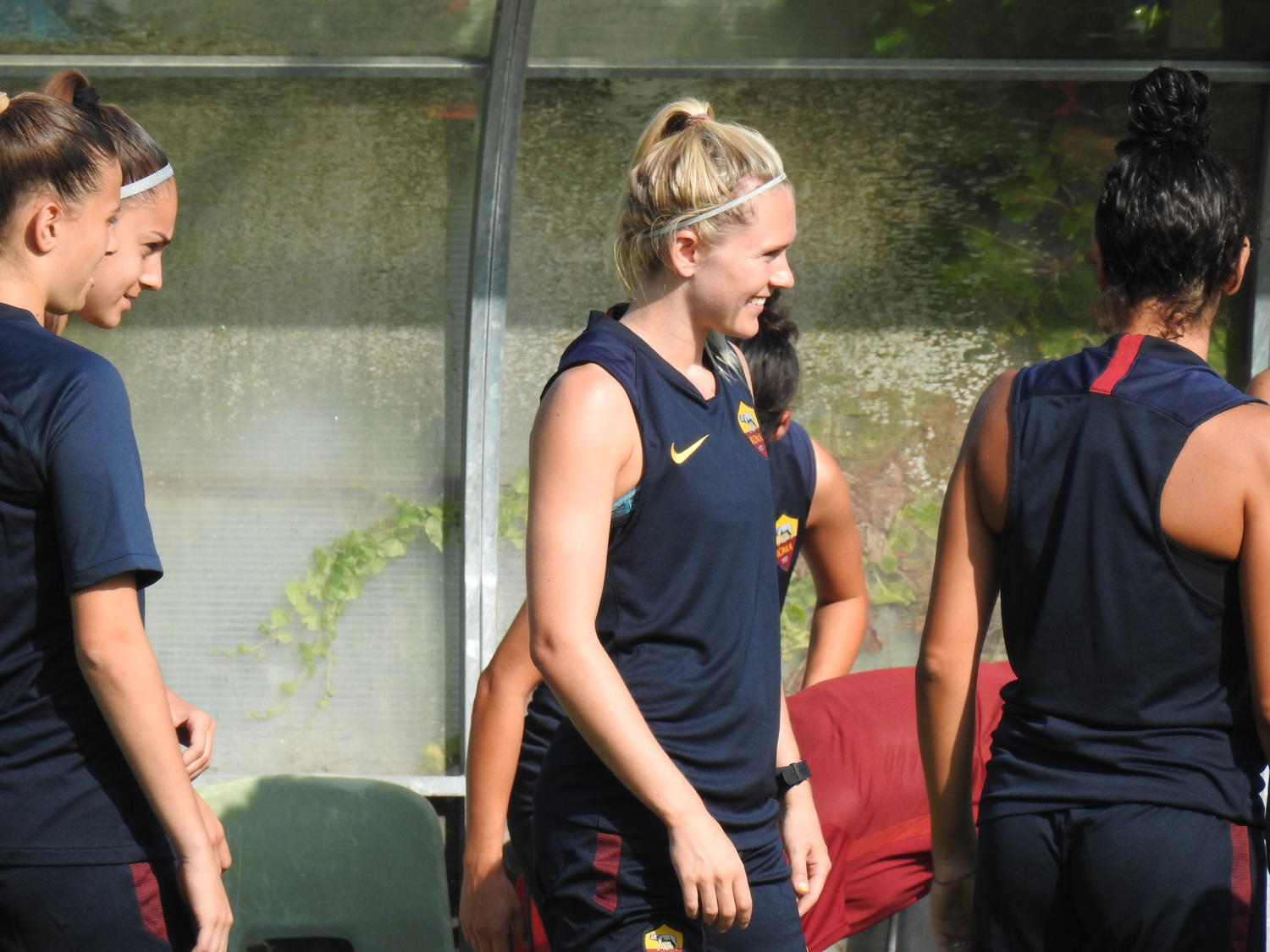 Dopo l'allenamento di questa mattina, le ragazze di coach Bavagnoli sono tornate in campo per l'allenamento pomeridiano. Dopo un inizio in palestra, il gruppo si è spostato in campo per una serie di esercitazioni con il pallone. A seguire, si è svolta una partitella che ha visto vincitrici le blu per 5-1 contro le arancio. In grande spolvero Vanessa Bernauer, autrice di una tripletta. Da segnalare, per le arancio, la bellissima punizione messa a segno da Andressa Alves. Non si sono allenate con le compagne Bonfantini (contrattura), Soffia (affaticamento) e Zecca (allenamento a parte).