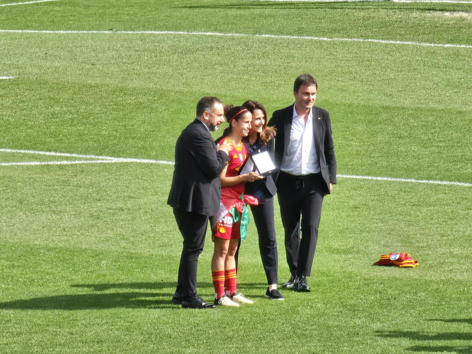 Al termine della sfida contro la Fiorentina, le due giallorosse hanno ricevuto una targa e una maglia celebrativa durante la festa scudetto.