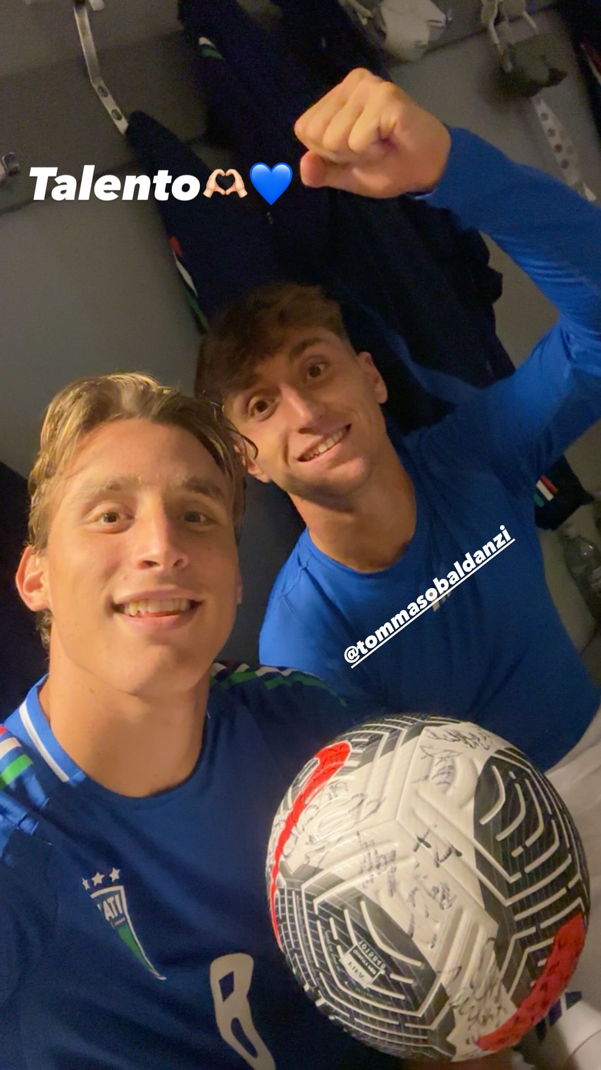 Quest'oggi Tommaso Baldanzi ha siglato un tripletta con la maglia dell'Under 21 nel match delle qualificazioni agli europei di categoria contro la Norvegia. Edoardo Bove, sul ex compagno a Roma, ha pubblicato uno scatto realizzato insieme negli spogliatoi, commentando "talento".