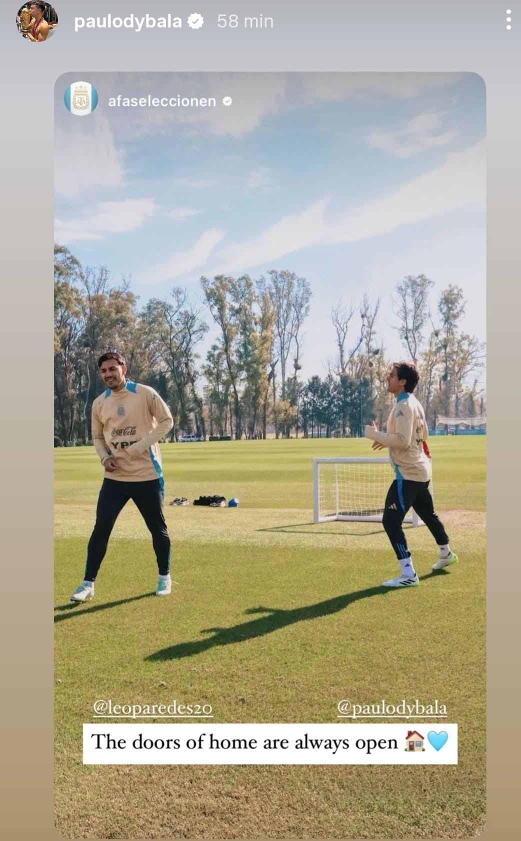 PROSEGUE IL RECUPERO - Sul proprio profilo Instagram, il nuemero 21 giallorosso ha postato nelle sue storie una serie di scatti che lo vedono al lavoro in palestra prima e in campo poi, insieme Leandro Paredes, prossimo al ritorno al Boca Juniors. L'attaccante, inotre, ha repostato anche la storia della nazionale argentina: uno scatto dei due giallorossi con la didascalia "le porte di casa sono sempre aperte", seguita da una casa e un cuore azzurro.